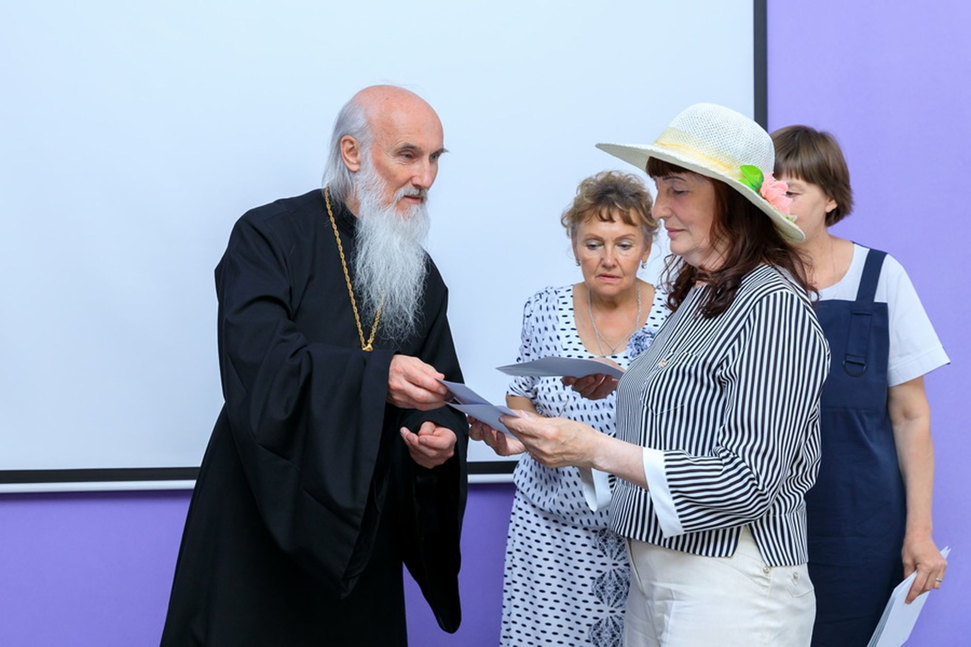 О благотворительном конкурсе «Православная книга своими руками» рассказала декан факультета повышения квалификации университета Г. Ю. Колычева. Основной задачей конкурса, который проводится уже 5 лет, является воспитание патриотизма и любви к Отечеству, утверждение положительных ценностных ориентиров. За весь период с начала основания конкурса были представлены 132 книги, из которых только в этом году руками детей и взрослых создано 57 книг. В этом году тематика конкурса была посвящена Петру I.