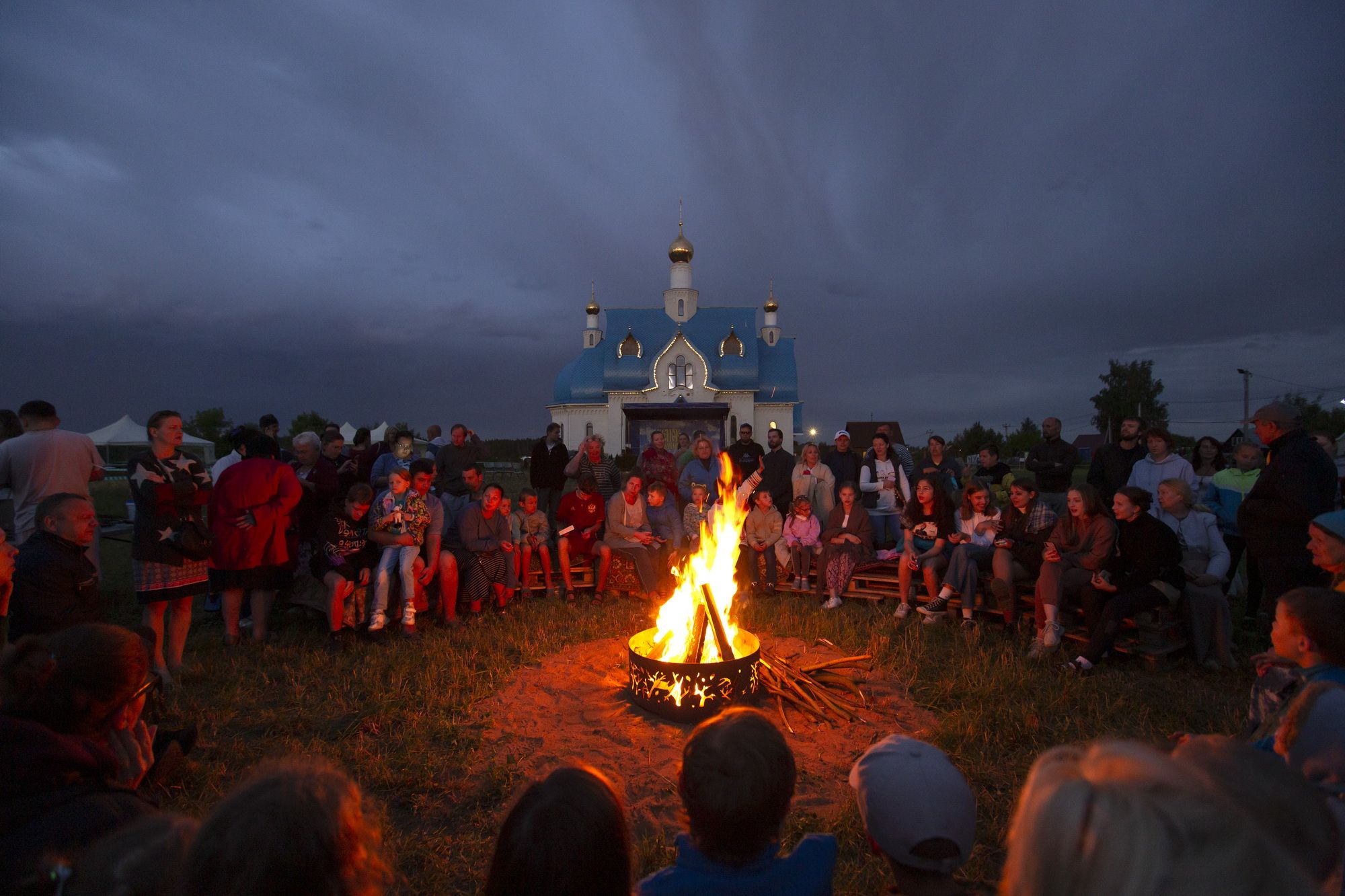 В заключение первого дня прошли молодежные вечёрки (игры, хороводы), которые завершились посиделками у костра с песнями под гитару.