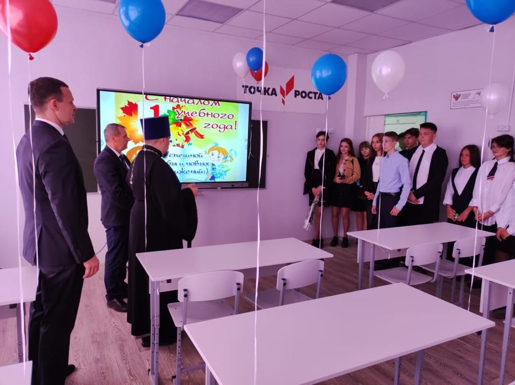 Священнослужители поздравили учеников и учителей с началом нового учебного года, дали духовные наставления на предстоящий учебный год и пожелали помощи Божией в обучении. Батюшки приняли участие в открытии шести «Точек роста» в подшефных школах.