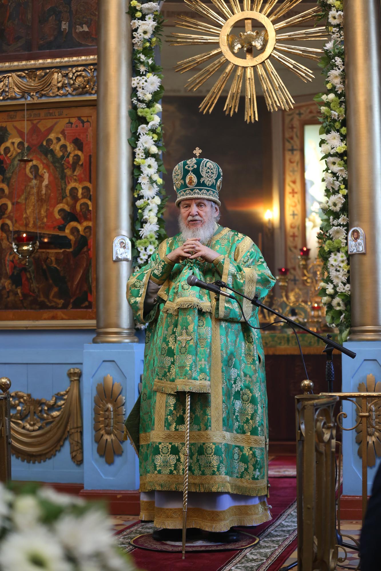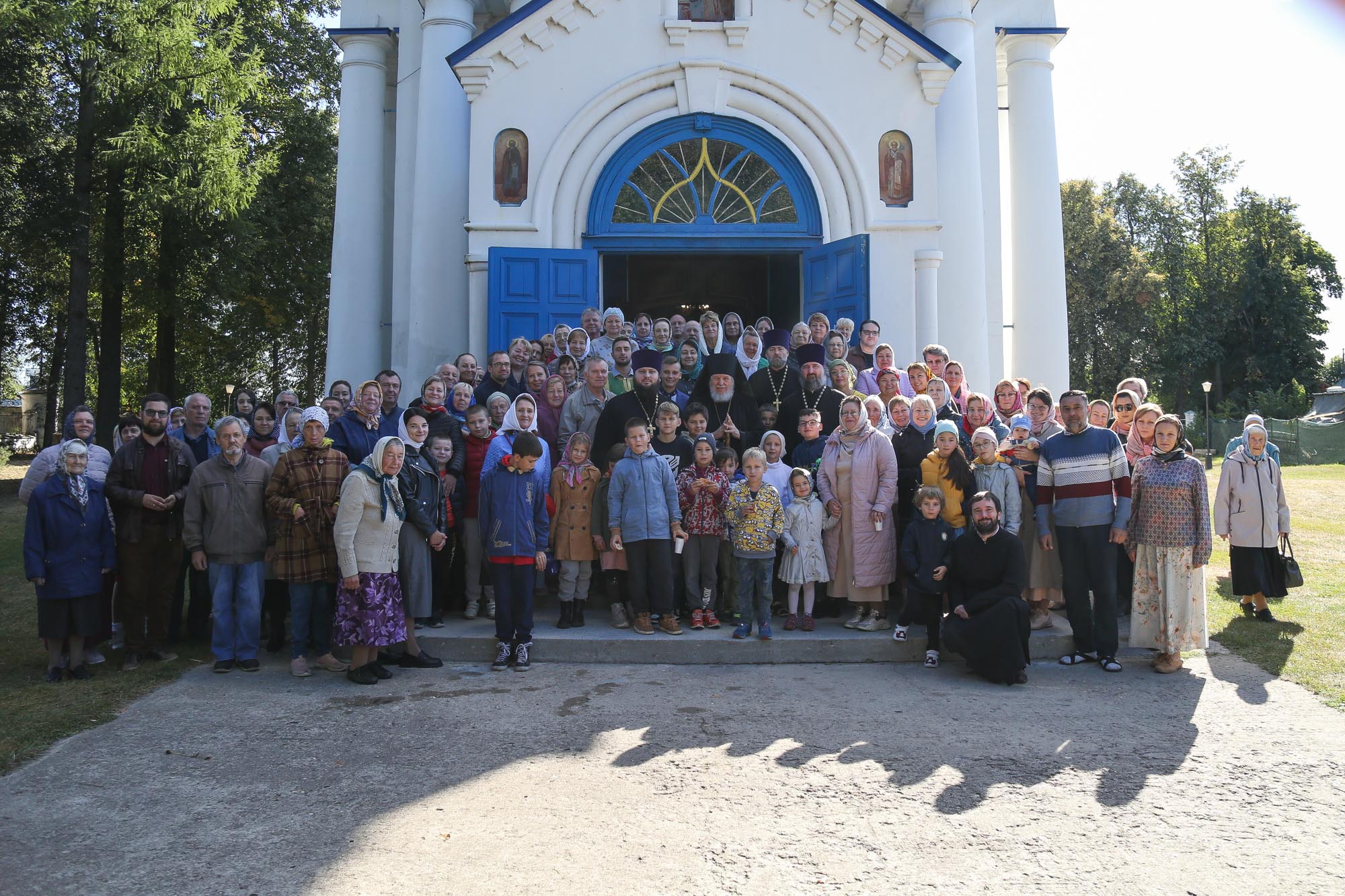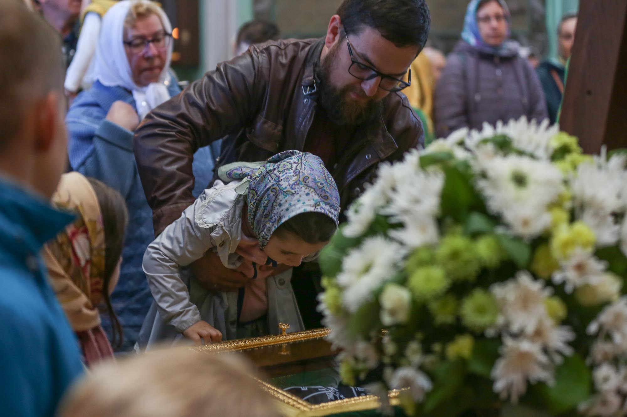 По окончании Литургии были совершены крестный ход и славление перед ракой со святыми мощами преподобного Саввы Стромынского, после чего отец настоятель поблагодарил Владыку Николая за совершённое богослужение и преподнёс ему образ преподобного Сергия Радонежского.
