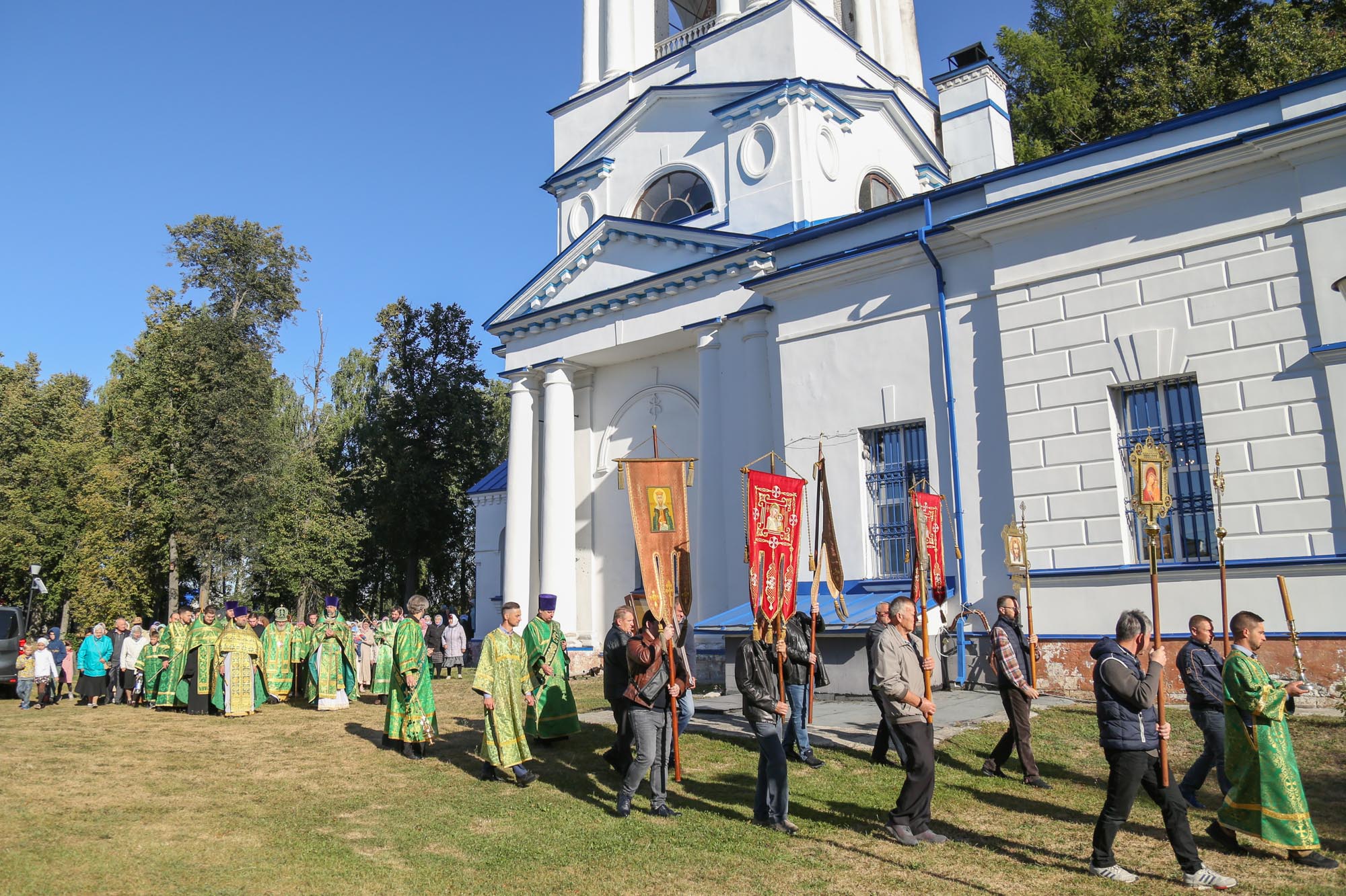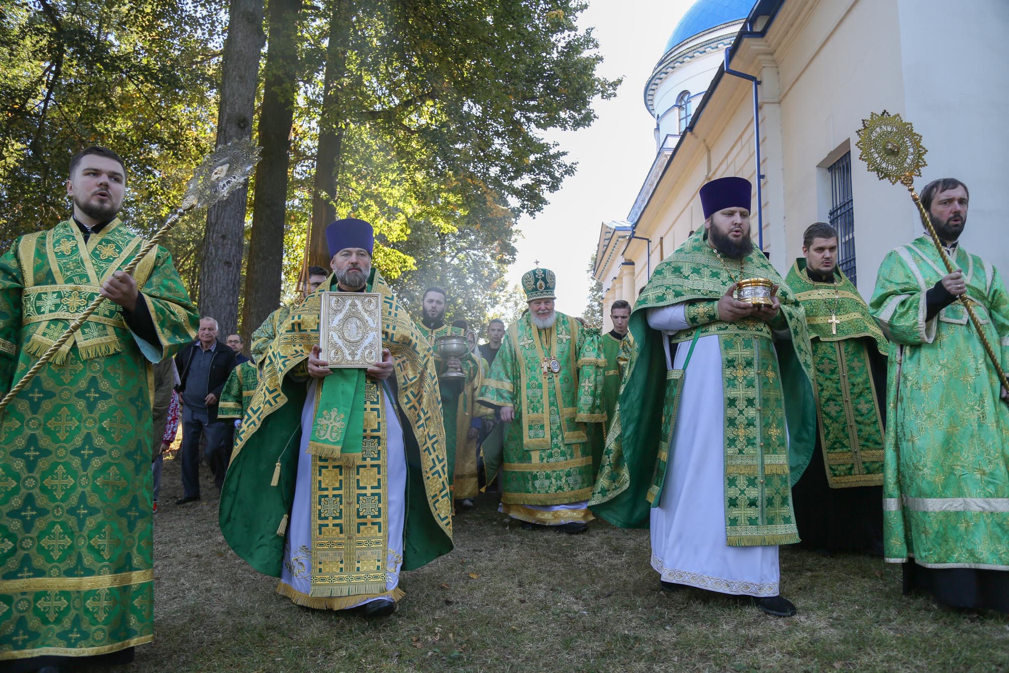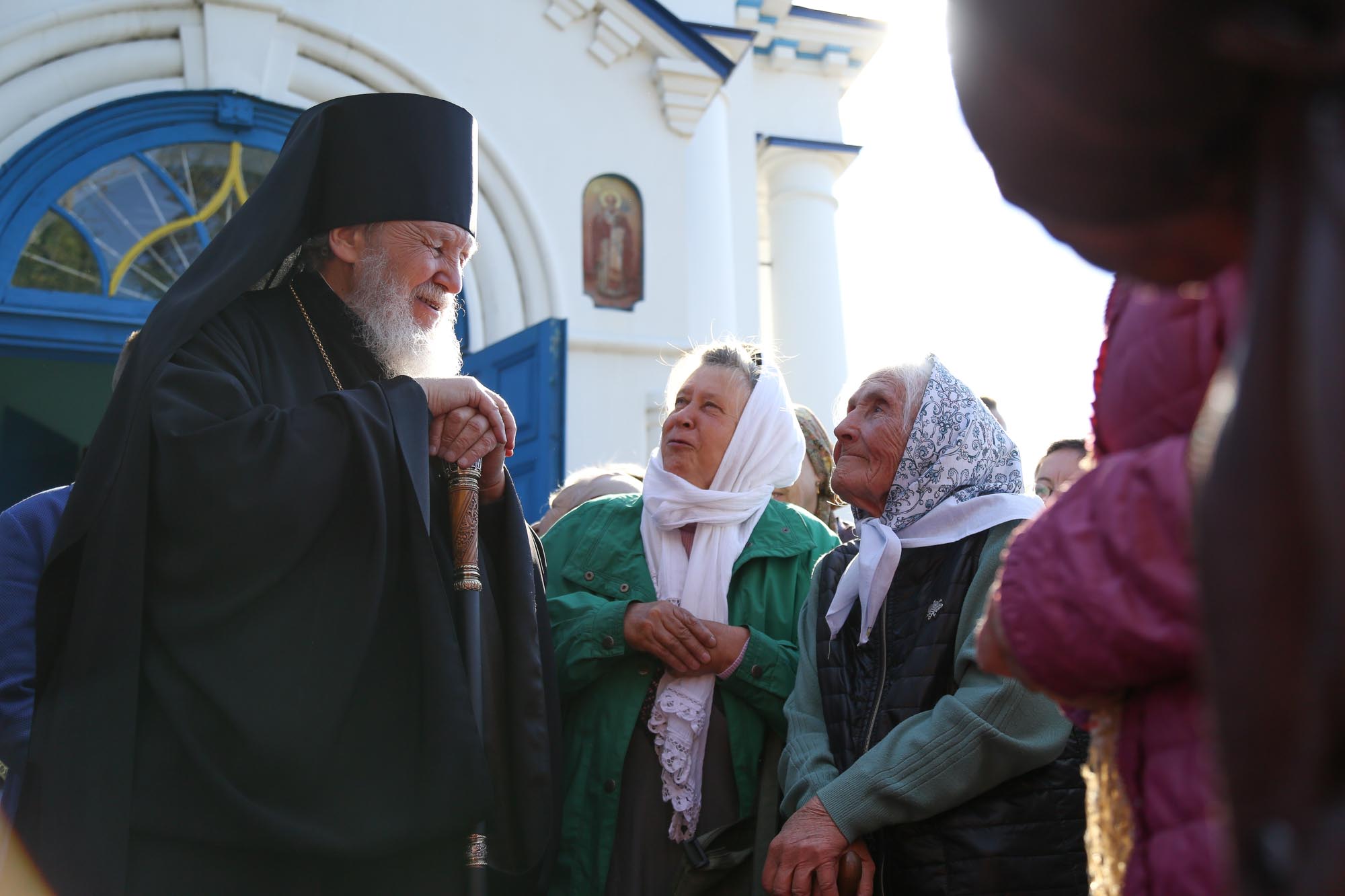 По окончании Литургии были совершены крестный ход и славление перед ракой со святыми мощами преподобного Саввы Стромынского, после чего отец настоятель поблагодарил Владыку Николая за совершённое богослужение и преподнёс ему образ преподобного Сергия Радонежского.