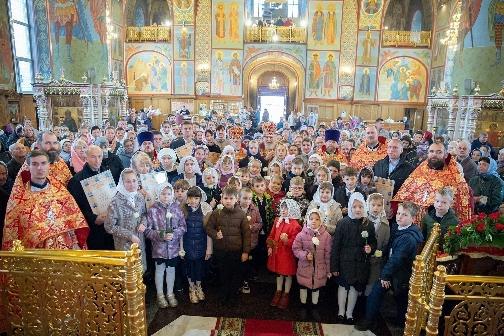 Затем Его Преосвященство обратился к духовенству и молящимся с архипастырским словом и вручил Архиерейские грамоты Балашихинской епархии представителям администрации округа и прихожанам собора.