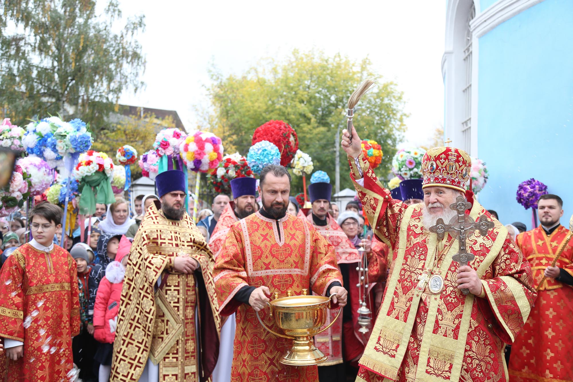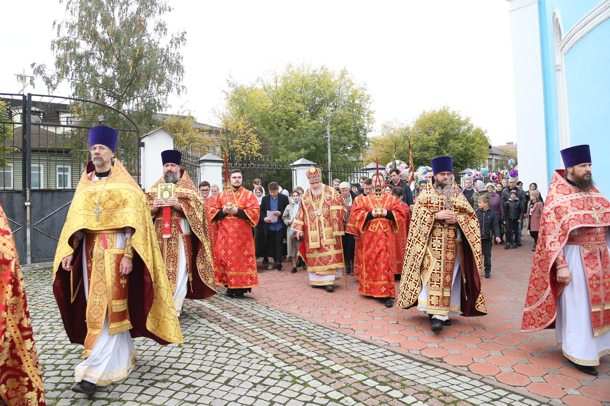 По окончании Литургии были совершены поклонение Честному и Животворящему Кресту и крестный ход с иконой священномученика Константина Богородского, в котором приняли участие православные гимназисты.