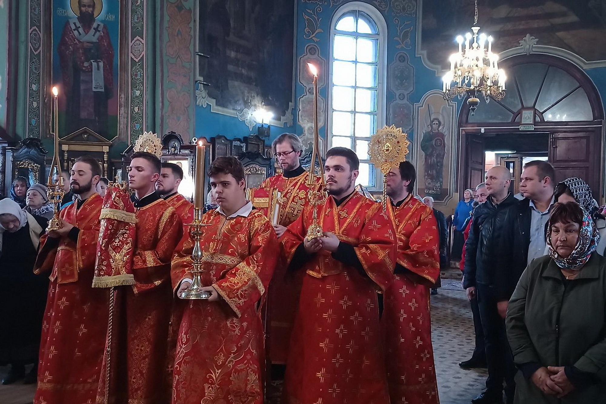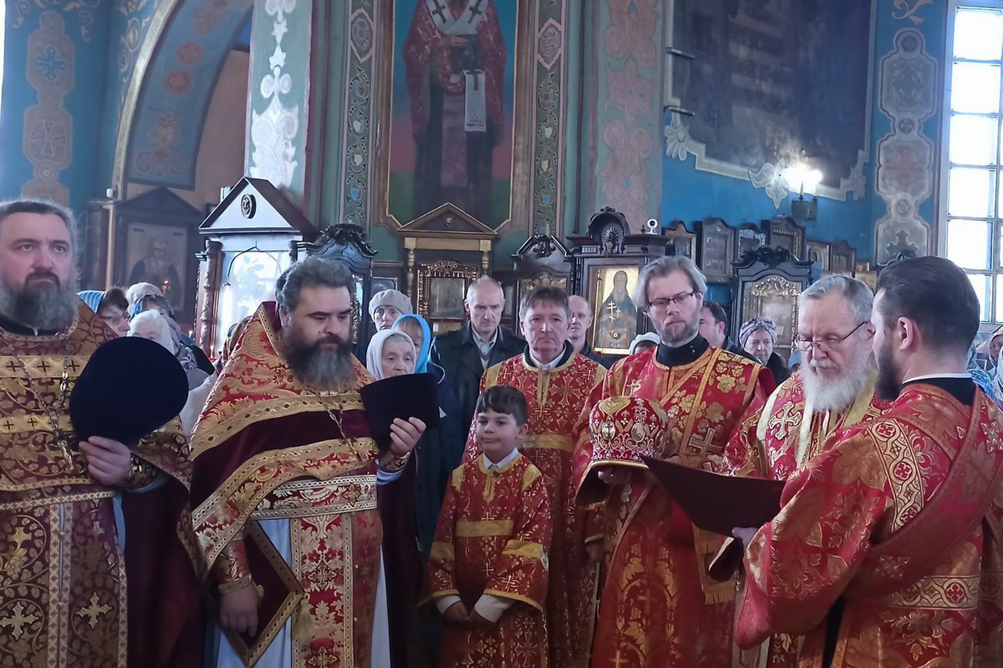 По окончании Литургии перед иконами праздников было совершено славление и возглашены уставные многолетия.