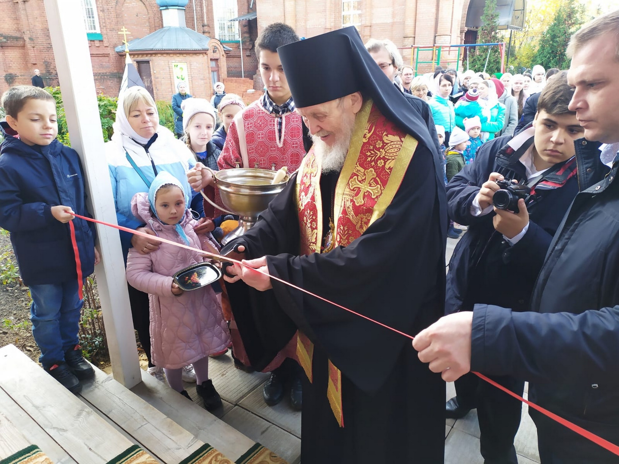 В этот же день Владыка Николай посетил новосооружённое здание приходской воскресной школы и совершил его освящение.