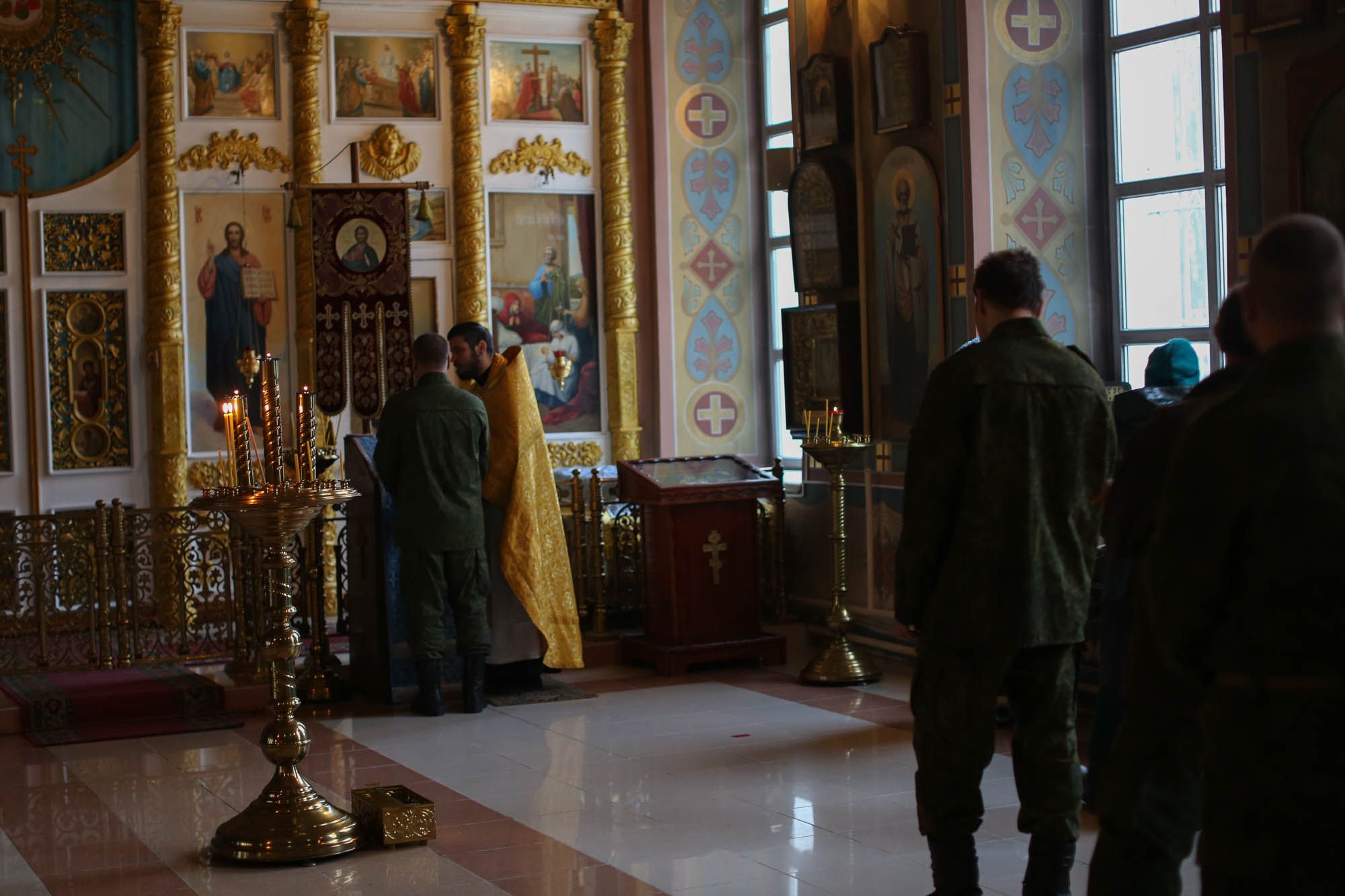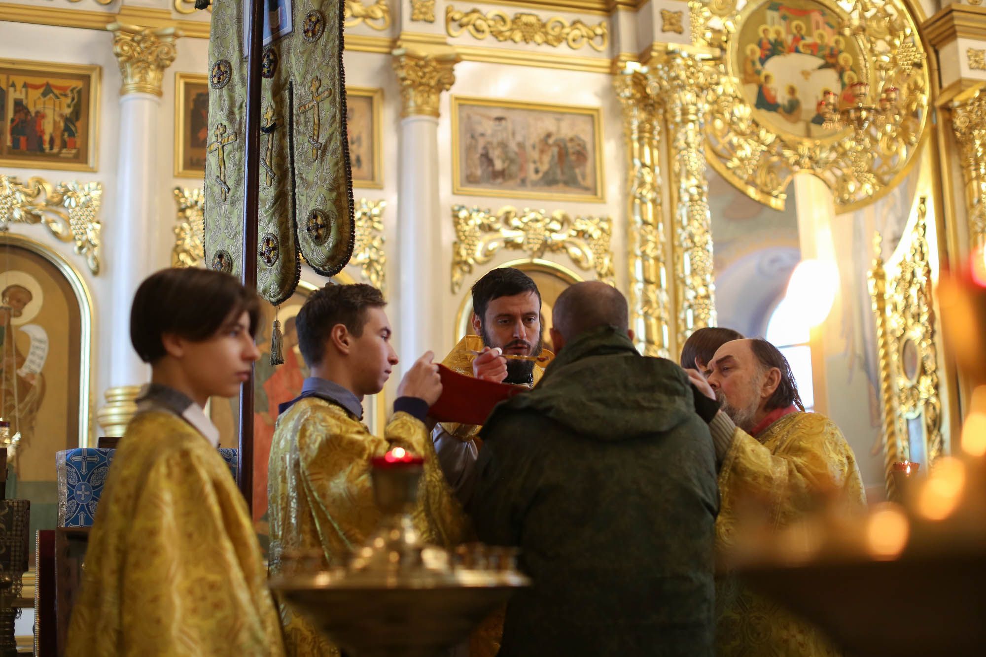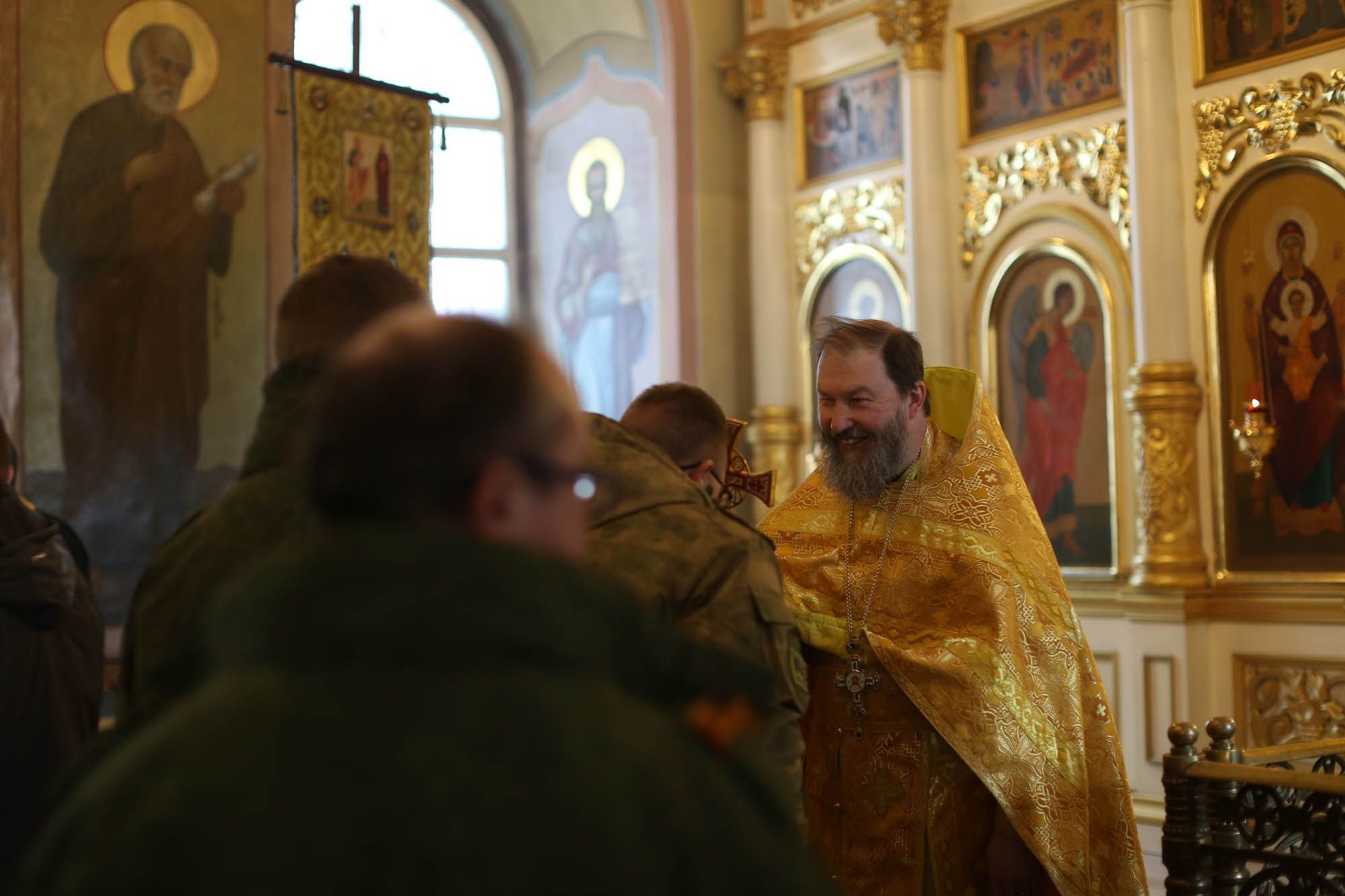 Перед началом богослужения настоятель храма протоиерей Сергий Решетняк обратился к воинам с напутственным пастырским словом. Мобилизованные помолились за Божественной литургией и причастились Святых Христовых Таин.