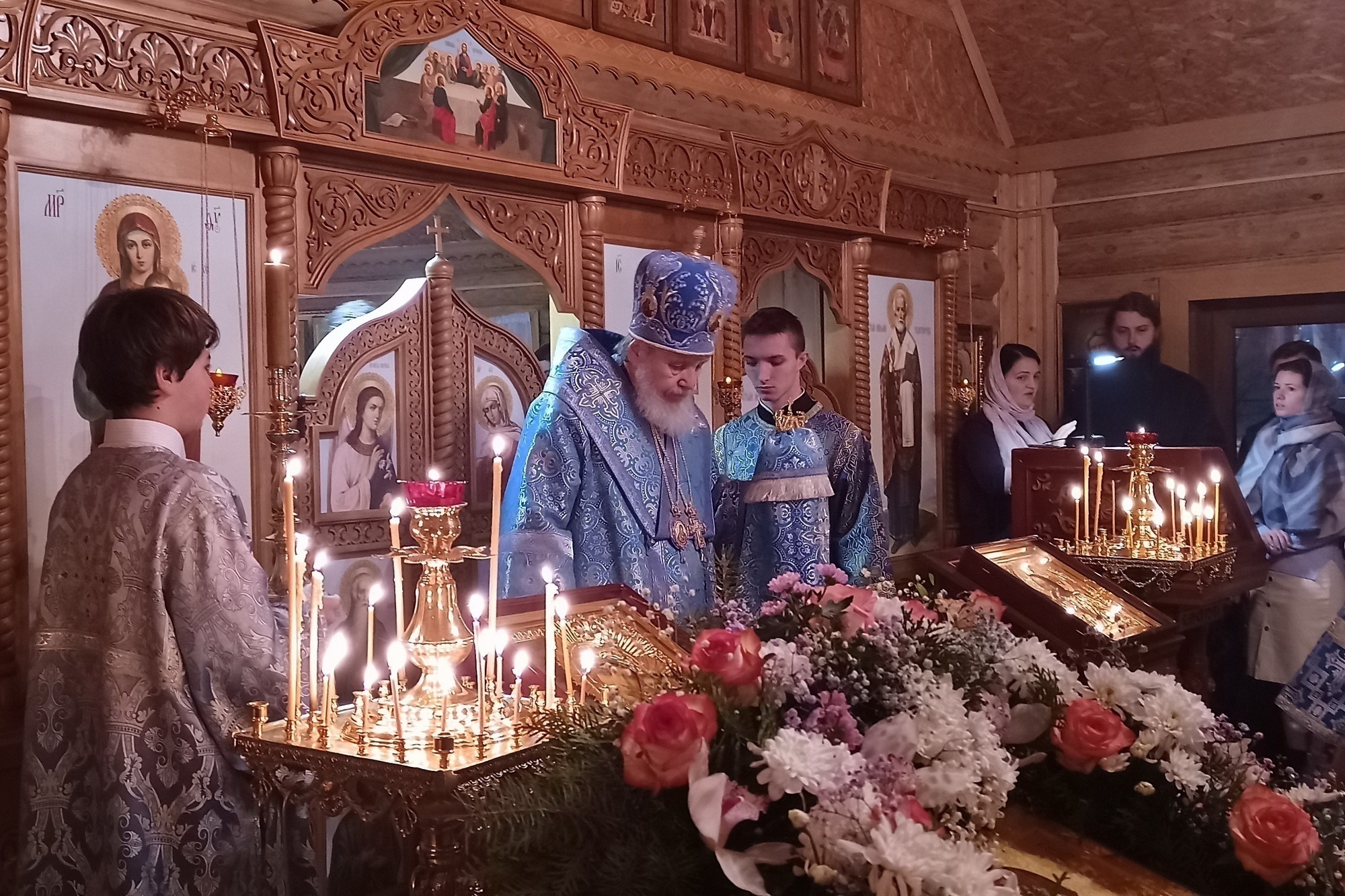 За богослужением молились начальник Новинского территориального отдела Е. Ю. Рожкова, благотворитель прихода генеральный директор предприятия «АкзоНобель-Лакокраска» С. С. Фидорищенко и прихожане.