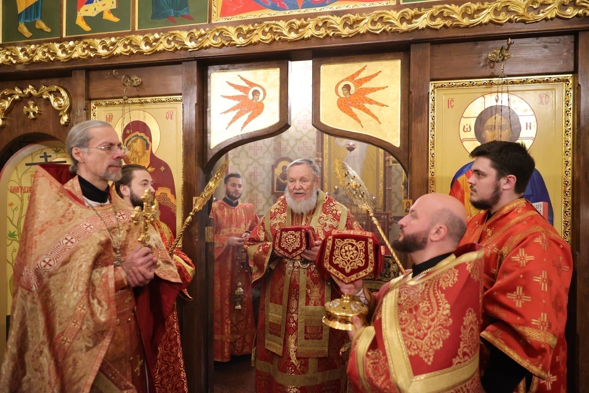 Его Преосвященству сослужили настоятель храма и благочинный Орехово-Зуевского церковного округа протоиерей Андрей Коробков, эконом Балашихинского епархиального управления протоиерей Александр Ивлев и клирик Богородицерождественского собора города Орехово-Зуево иеромонах Сергий (Светлов).