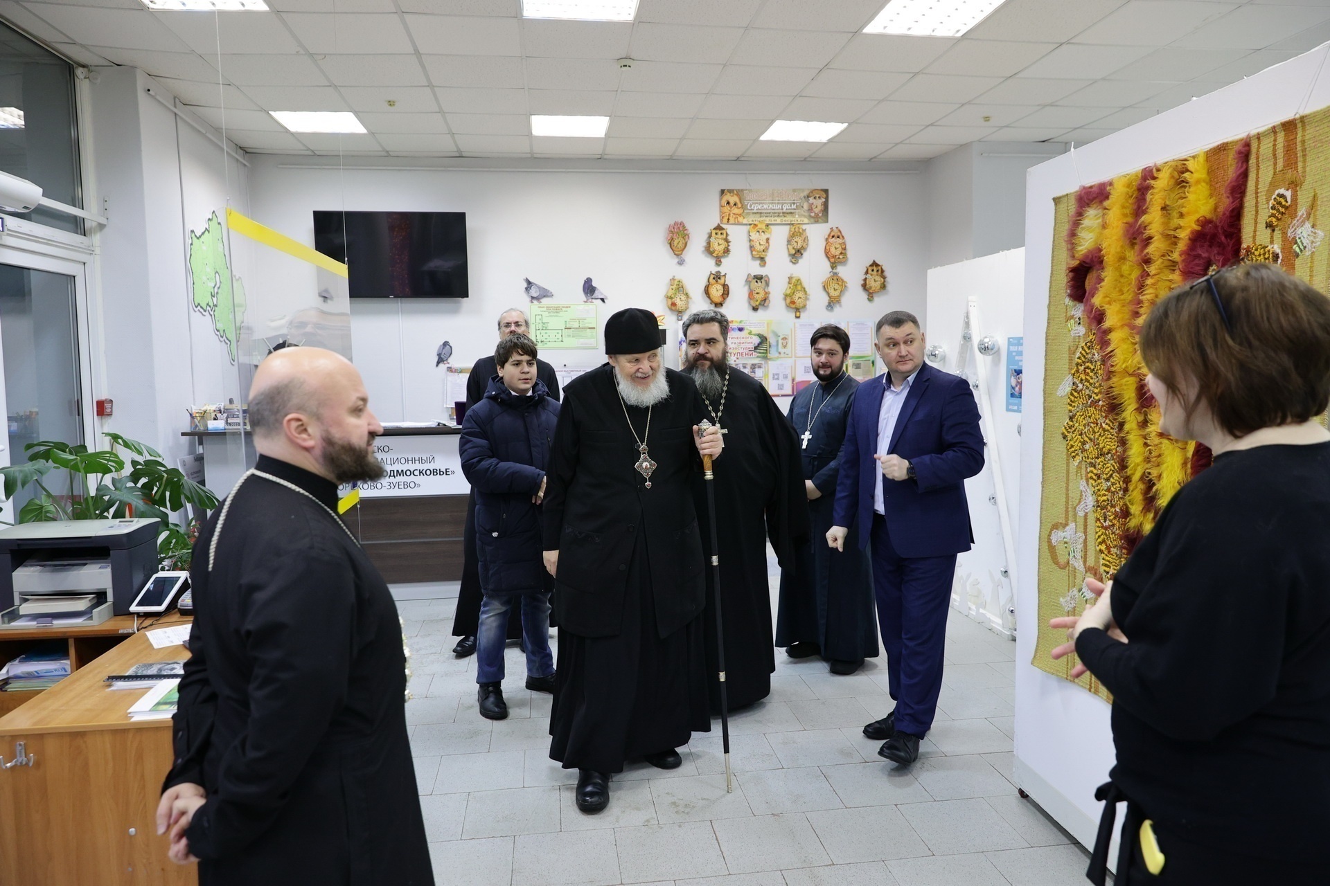Его Преосвященство сопровождали заместитель главы администрации Орехово-Зуевского городского округа В. Н. Ципляев, благочинный Орехово-Зуевского церковного округа протоиерей Андрей Коробков и благочинный Ликино-Дулёвского церковного округа священник Антоний Рыжаков.