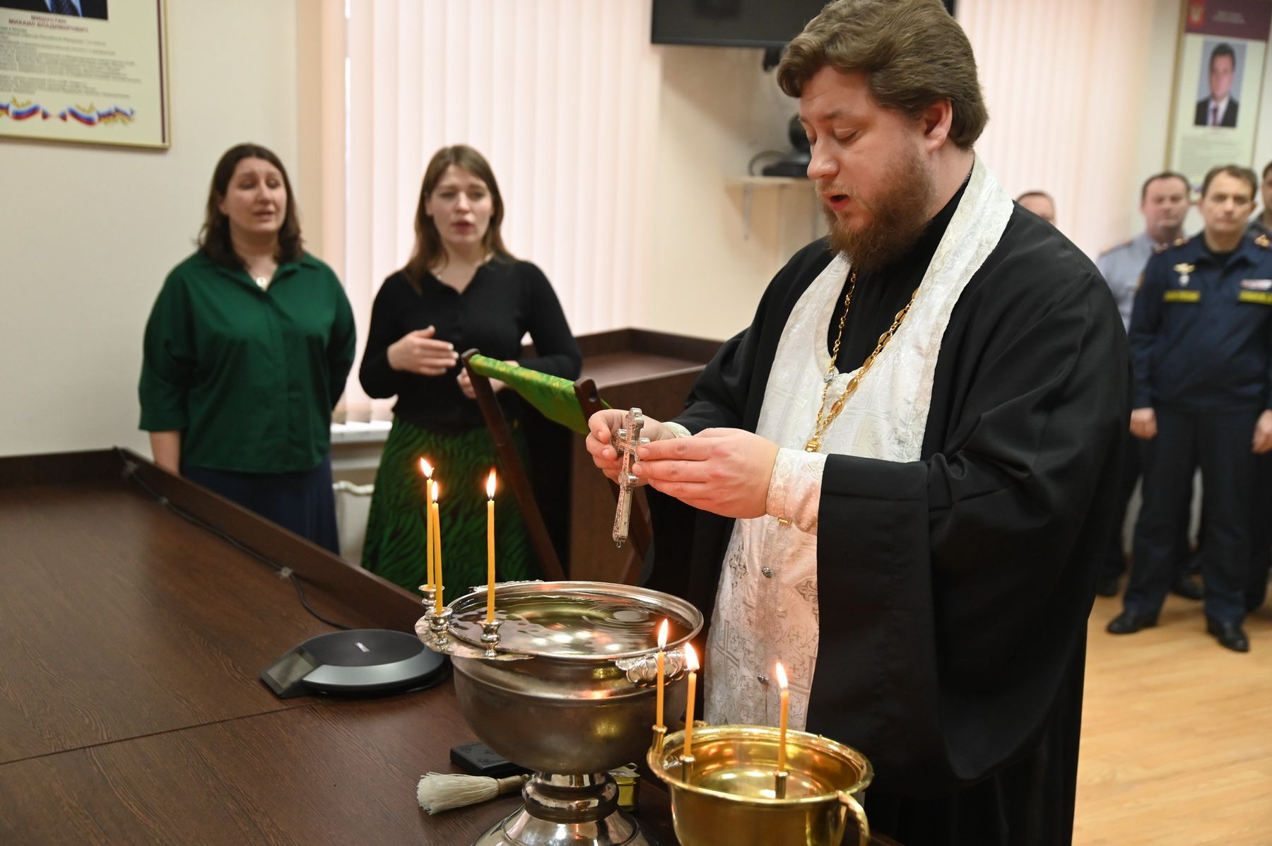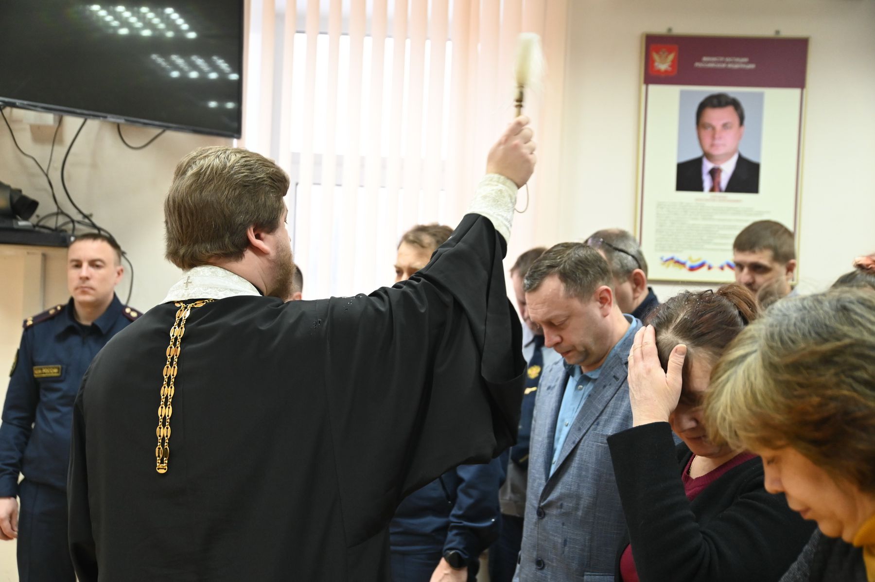 По окончании богослужения священнослужители окропили помещения УФСИН святой водой.