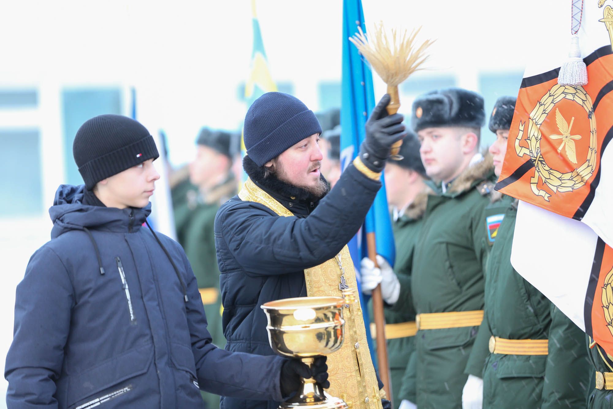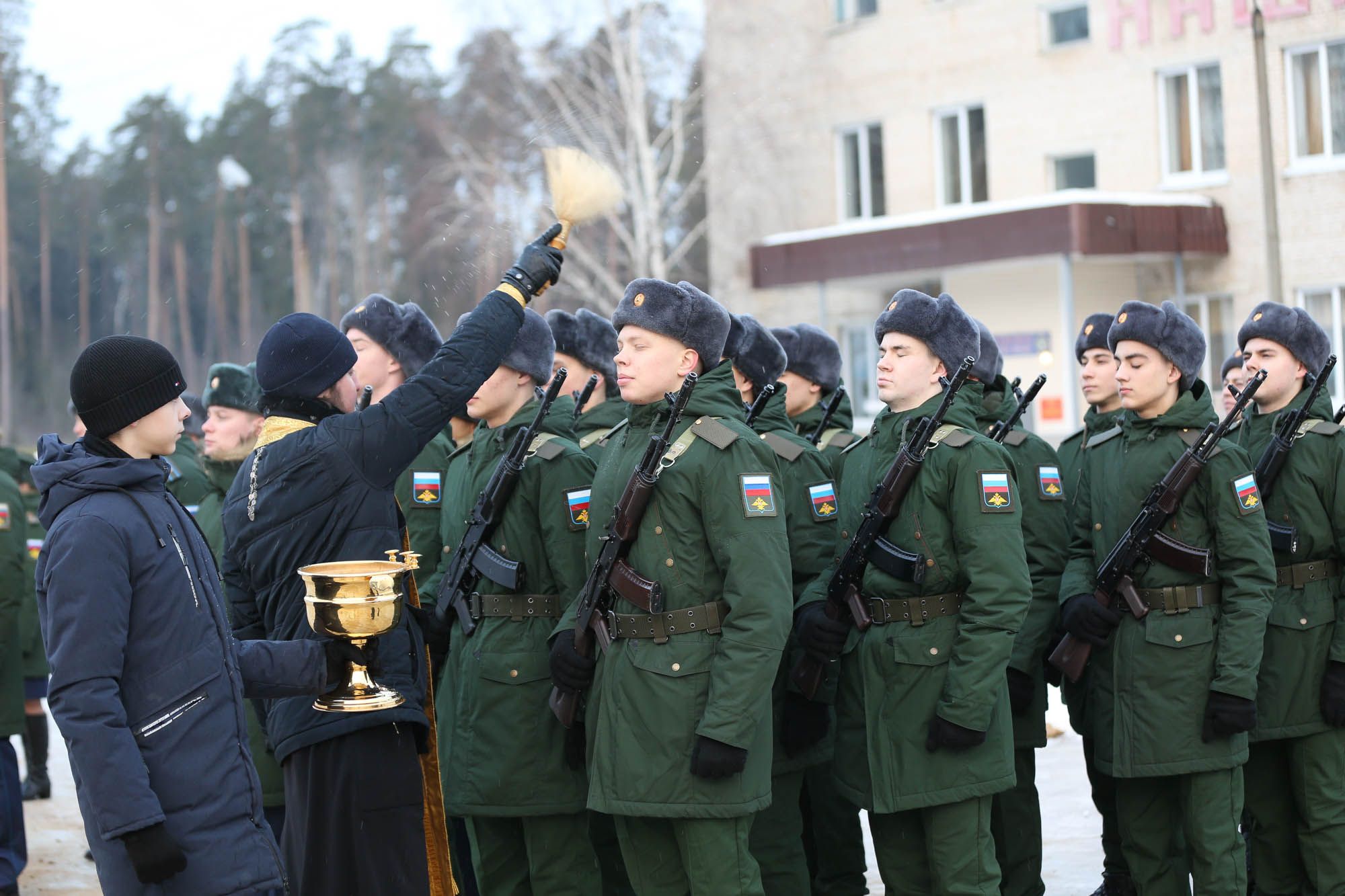 Настоятель Александро-Невского храма г. Ногинск-9 священник Вячеслав Краснов обратился к присутствующим с пастырским словом и благословил молодое пополнение на службу.
