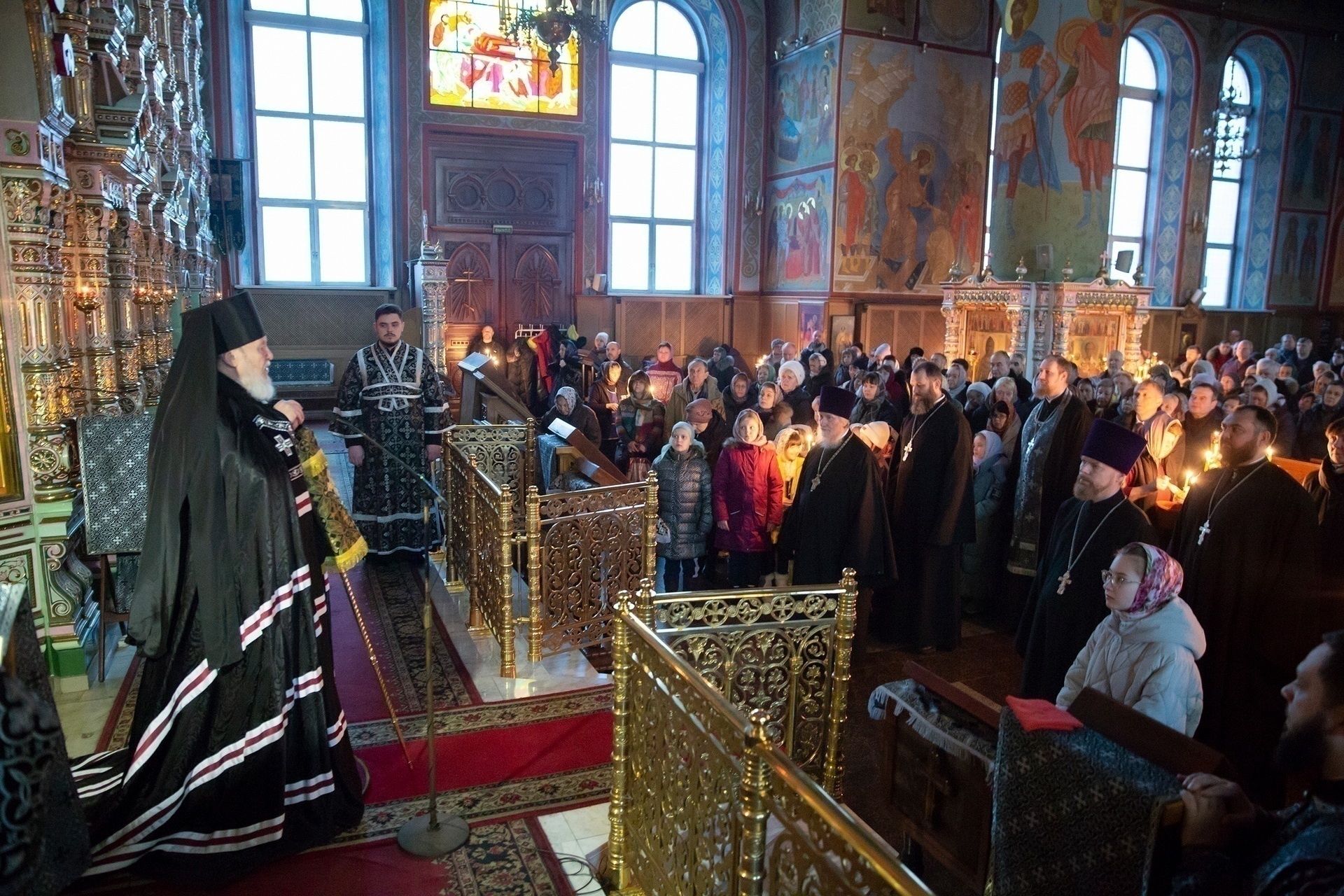 После прочтения канона Его Преосвященство обратился к духовенству и молящимся с архипастырским словом.