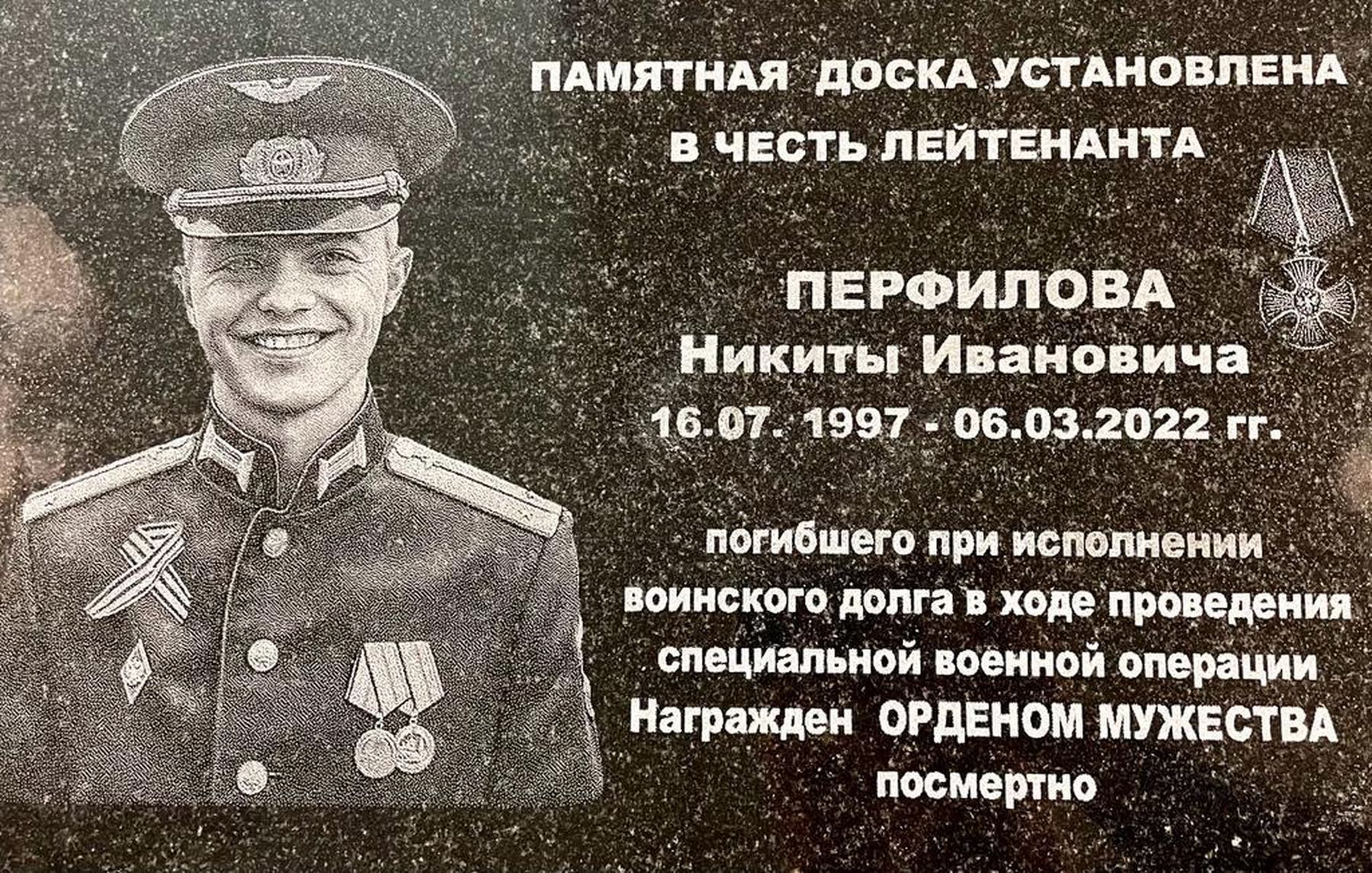 16 марта в кадетской школе-интернате с первоначальной лётной подготовкой имени трижды Героя Советского Союза А.И. Покрышкина города Фрязино прошло торжественное мероприятие, посвящённое открытию мемориальной доски памяти выпускника школы лейтенанта Перфилова Никиты, погибшего при исполнении воинского долга в ходе специальной военной операции 6 марта 2022 года.