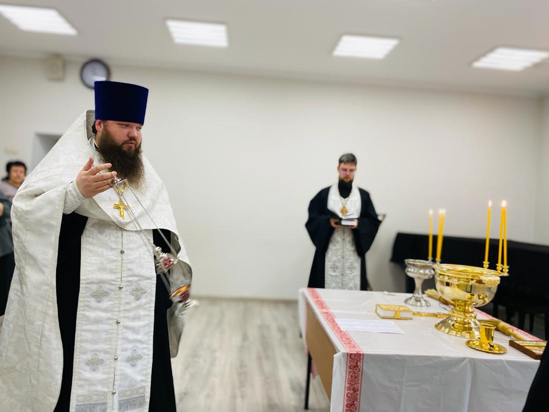 Отец Александр обратился к коллективу учреждения с приветственным словом и преподнёс директору учреждения Г. В. Шиловой в благословение икону преподобного Романа Сладкопевца.