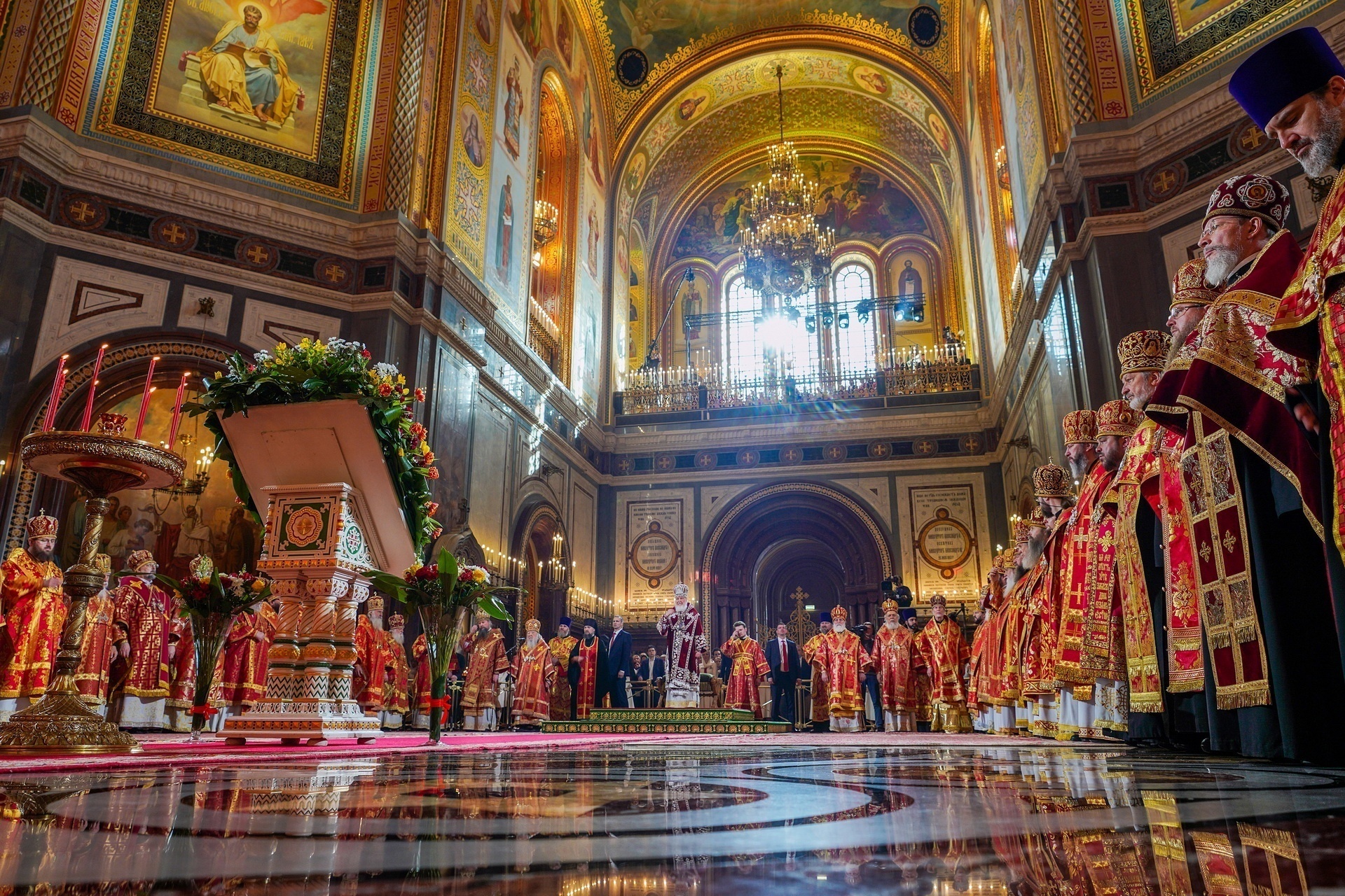Архипастыри, пастыри, многомилионная паства Ваша, Ваше Святейшество, мысленно сейчас переносятся в этот кафедральный собор, чтобы выразить Вам свои горячие молитвенные благопожелания.