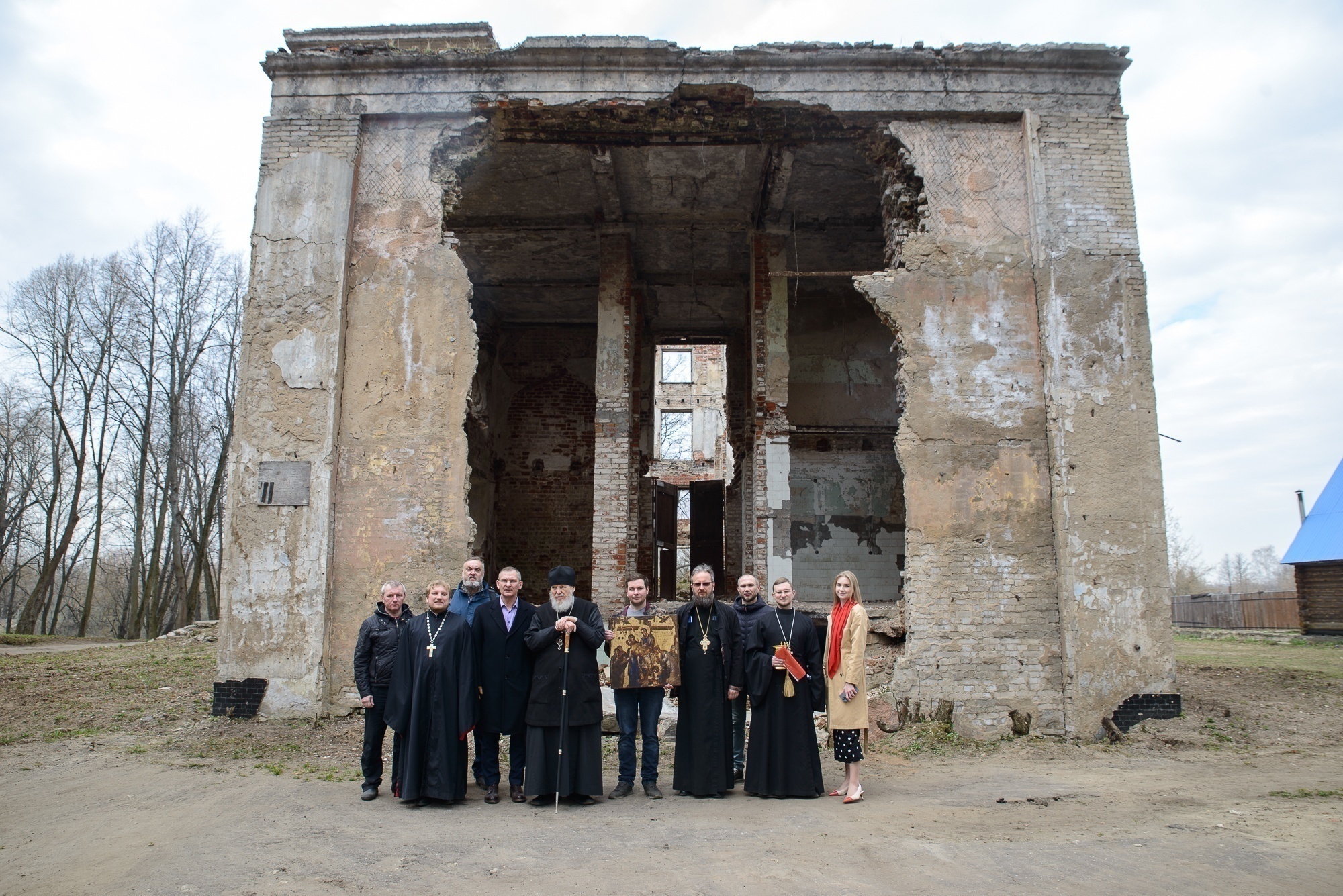 Владыка Николай посетил порушенный Иоанно-Богословский храм деревни Корпуса, расположенный на территории усадьбы, где совершил молебное пение перед началом восстановительных работ и окропил храм святой водой.