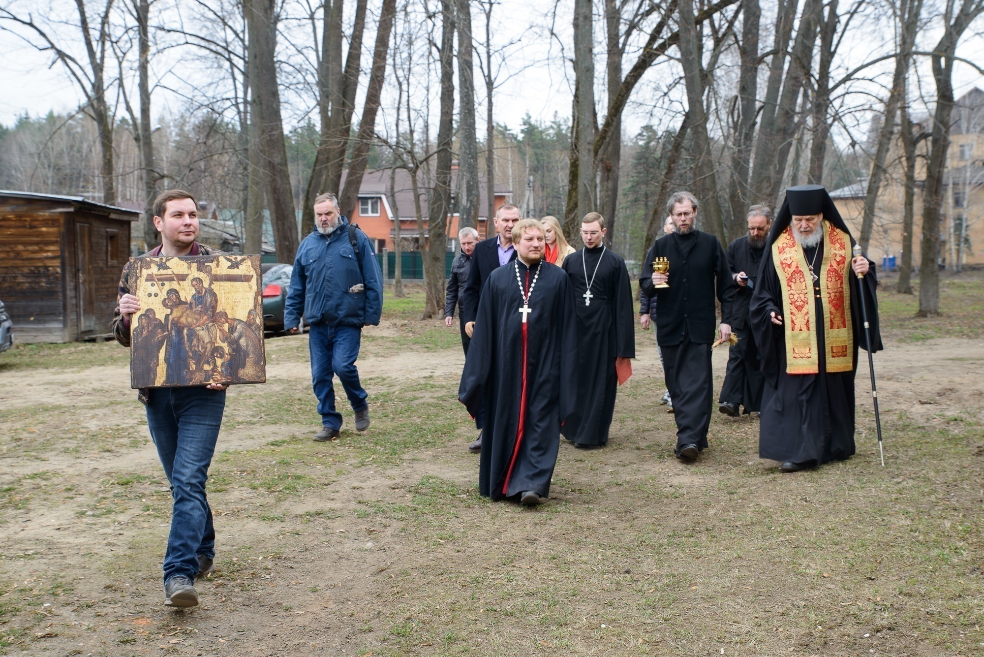 В. В. Фомичёв поблагодарил епископа Николая за молитву и преподнёс ему икону «Снятие со Креста», привезённую из Иерусалима. Затем состоялось обсуждение планов по восстановлению порушенной святыни.