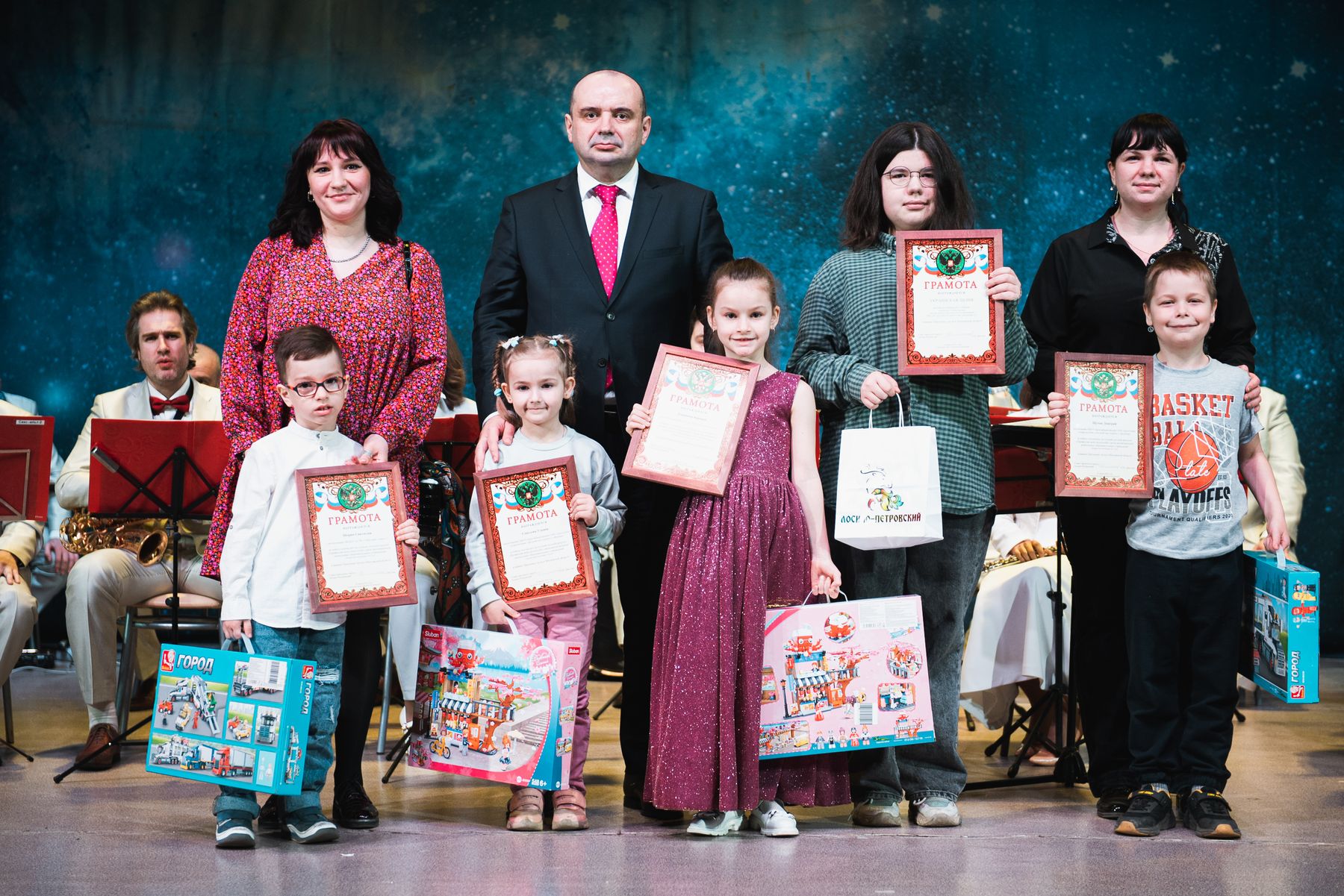 К участникам праздничных торжеств обратился глава городского округа С.Н. Джеглав, который отметил лучших работников разных отраслей городского округа благодарственными письмами и почётными грамотами.