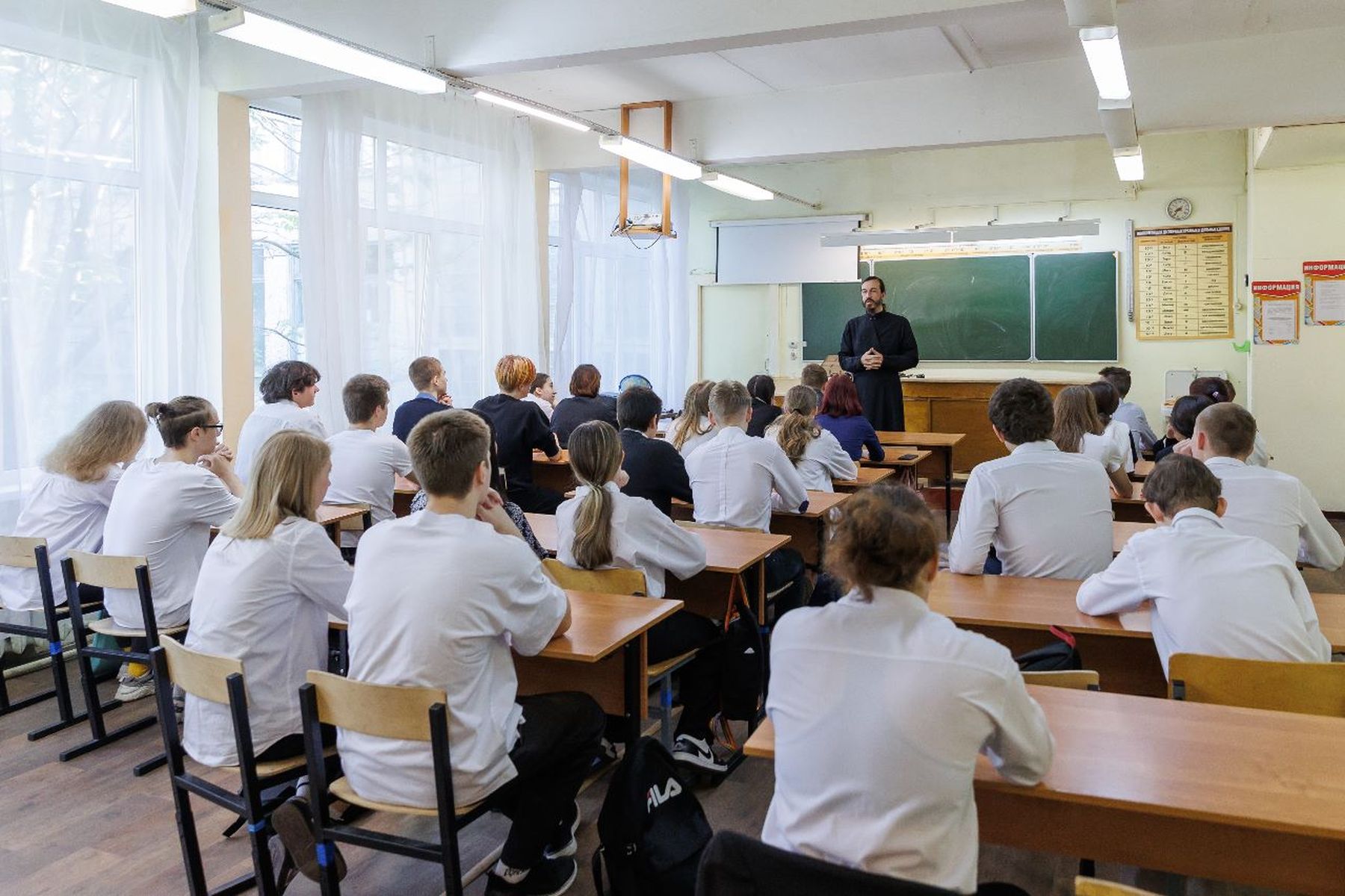 На уроках говорили о пользе чтения и всестороннего образования, появлении на Руси книгопечатания, о Библии и ее содержании, о Воскресении Христа, свободе воли человека и об ответственности за сделанный выбор, о добре и зле, обсуждали начало жизни человека и жизнь после смерти, выбор будущего пути, о саморазвитии. Посмотрели и обсудили тематические видеоролики. В завершение уроков Павел Сергеевич ответил на вопросы ребят.