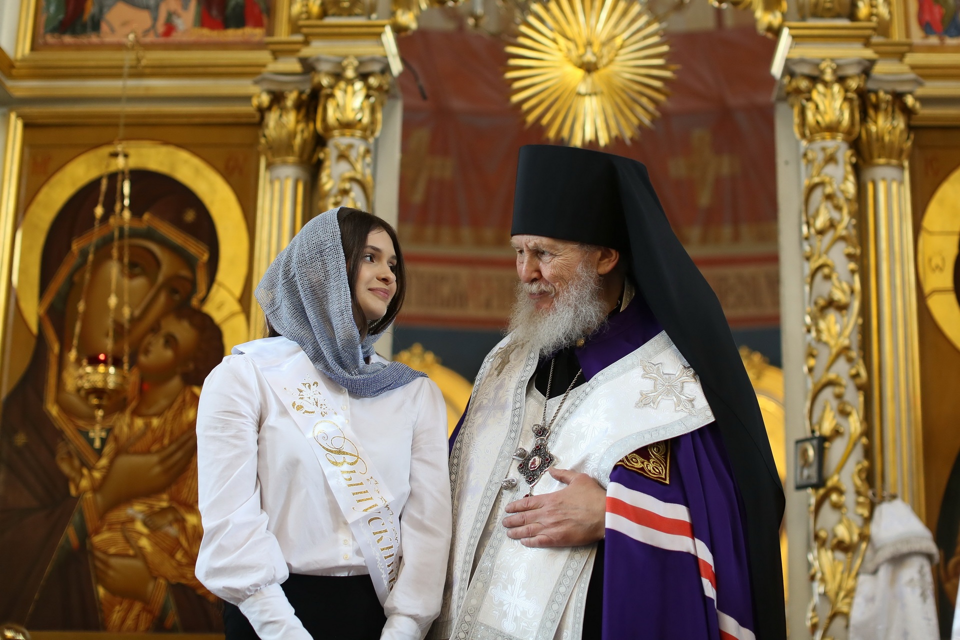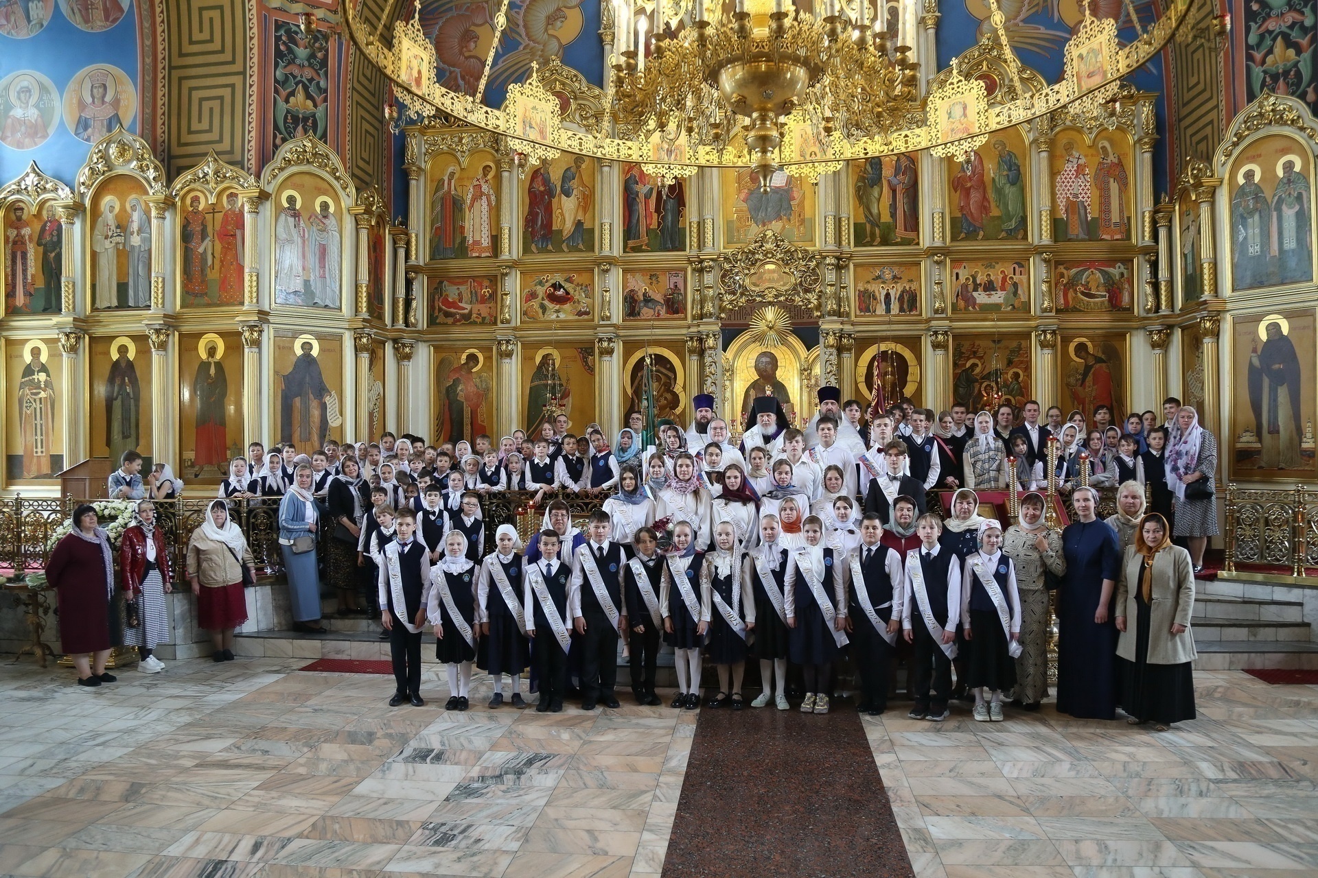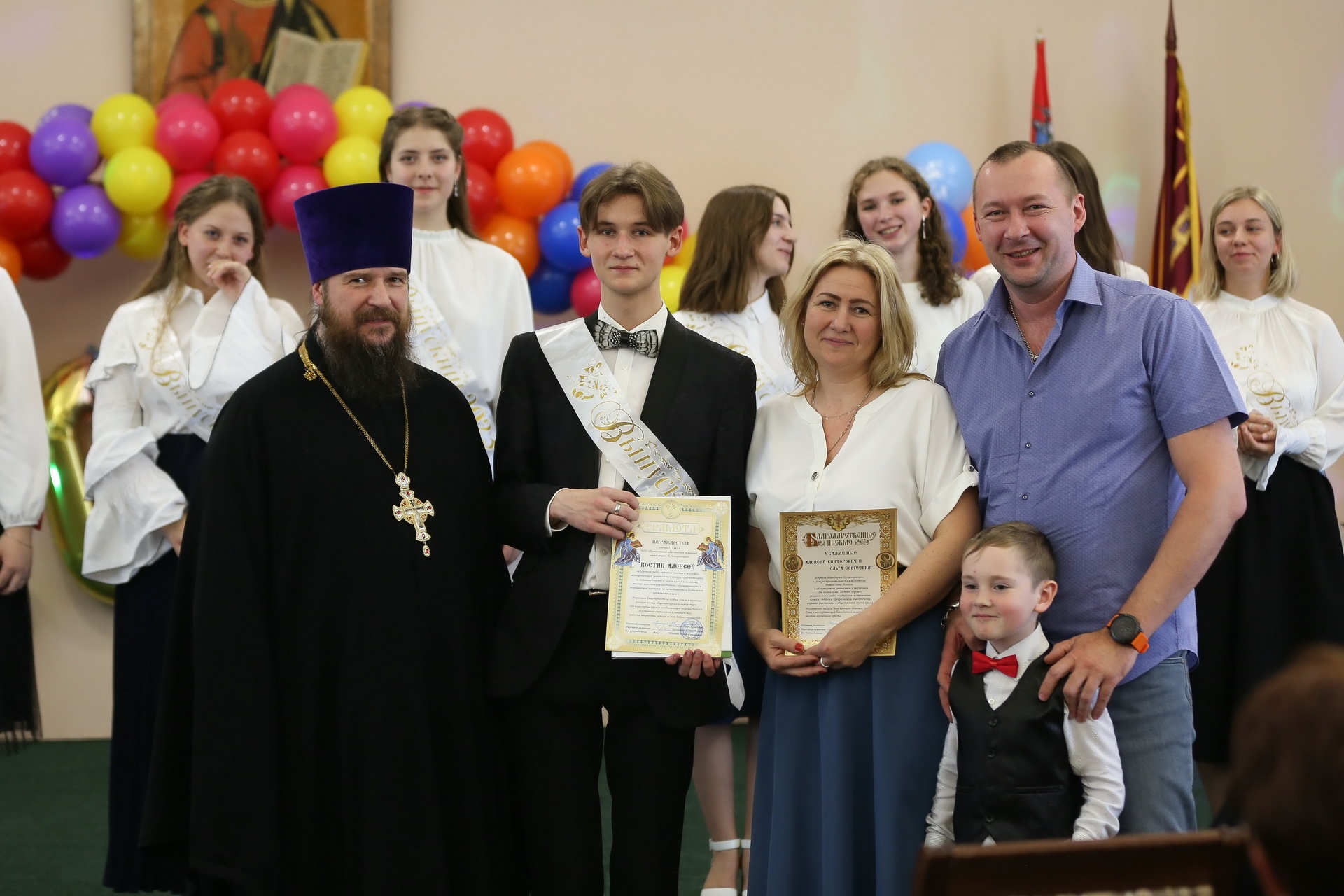 По окончании молебна Его Преосвященство вручил ленты выпускникам, окончившим 4, 9 и 11 классы, кратко побеседовав с каждым из них, после чего обратился к молящимся с архипастырским словом.