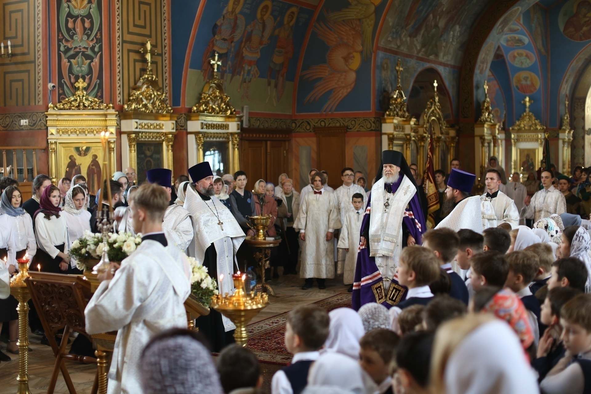 Его Преосвященству сослужили духовник гимназии, благочинный Богородского церковного округа протоиерей Марк Ермолаев и директор гимназии протоиерей Олег Волков.