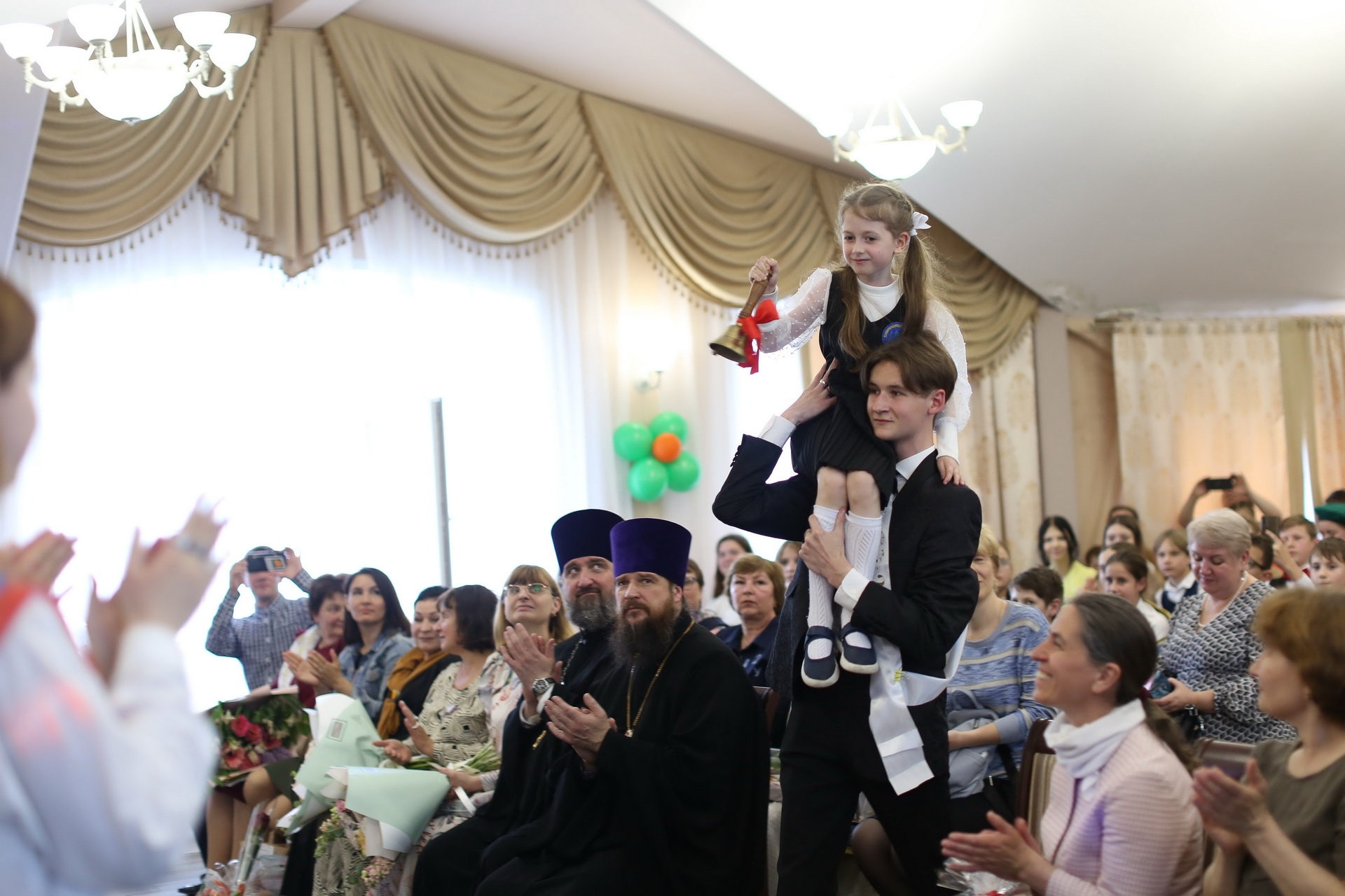 Затем в просветительском центре при Богоявленском соборе состоялся торжественный акт. С пастырским словом к детям обратились духовник гимназии, благочинный Богородского церковного округа протоиерей Марк Ермолаев и директор гимназии протоиерей Олег Волков. Прозвучали слова благодарности в адрес учителей и сотрудников гимназии. Состоялся концерт, на котором выступили гимназисты.