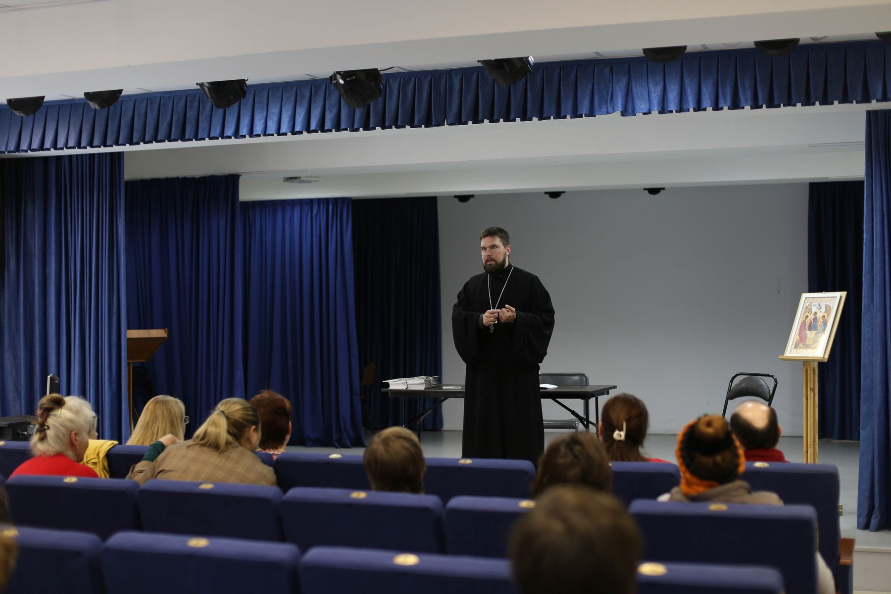 Настоятель Христорождественского храма села Ямкино священник Георгий Гагулин проэкзаменовал выпускников и вручил им свидетельства о прохождении курсов, а в заключение встречи обратился к собравшимся с пастырским словом.
