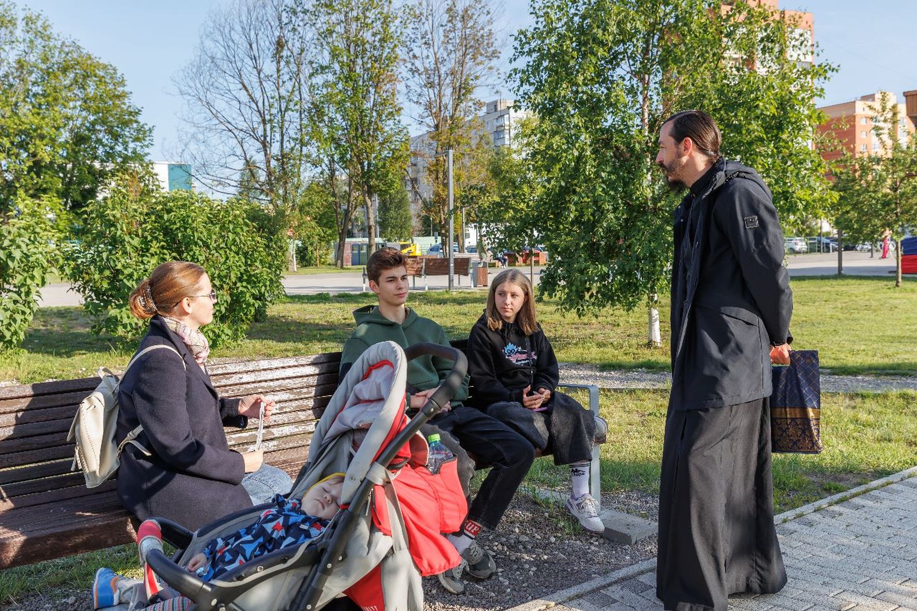 11 июня ответственный за миссионерскую работу в Орехово-Зуевском церковном округе П. С. Королёв и участники проекта «Поговорим» беседовали в парке Победы с людьми о христианских святых и о личном призвании к святости.
