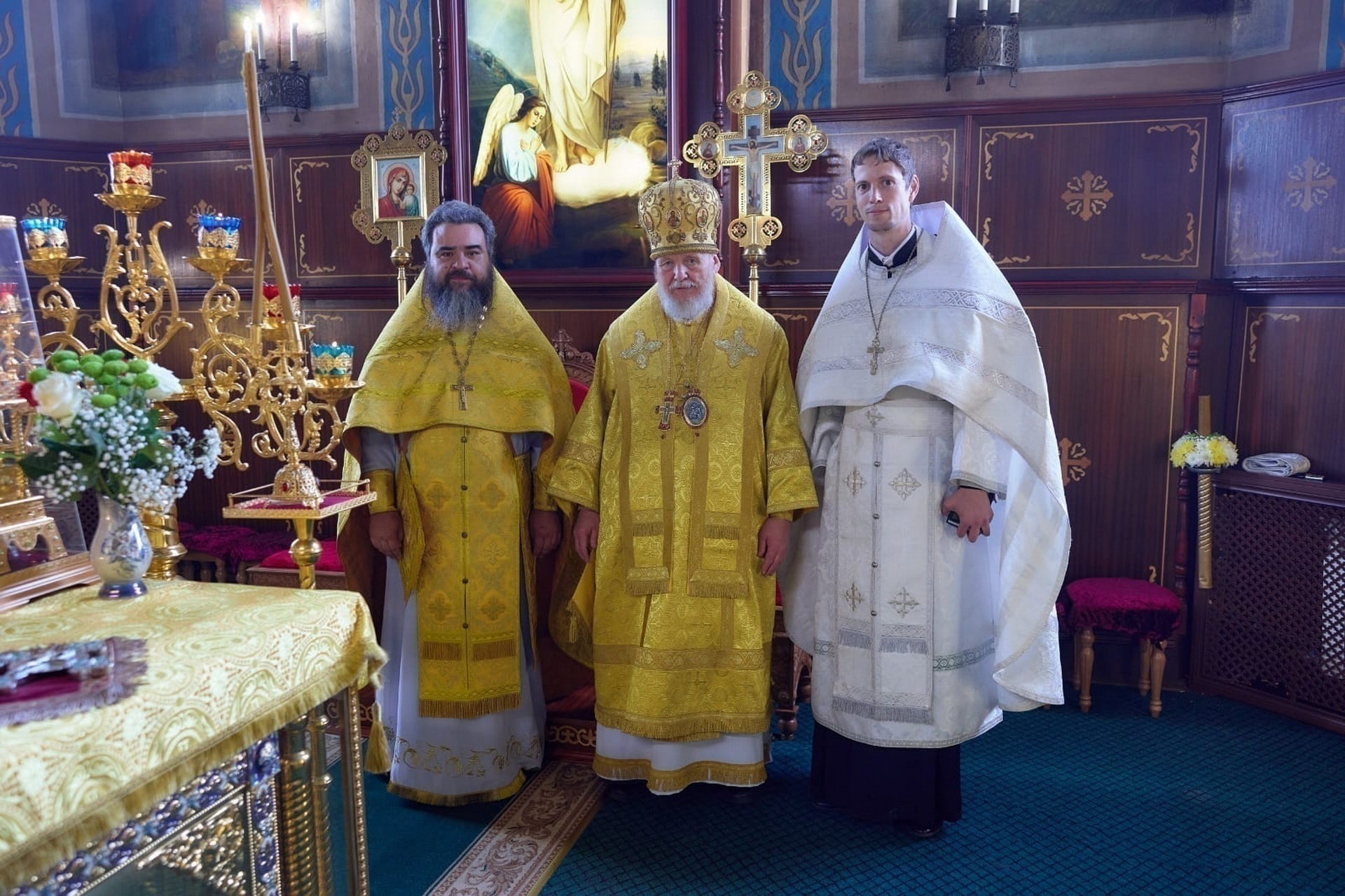 По окончании Литургии отец благочинный обратился к епископу Николаю с приветственным словом и преподнёс ему панагию и крест.