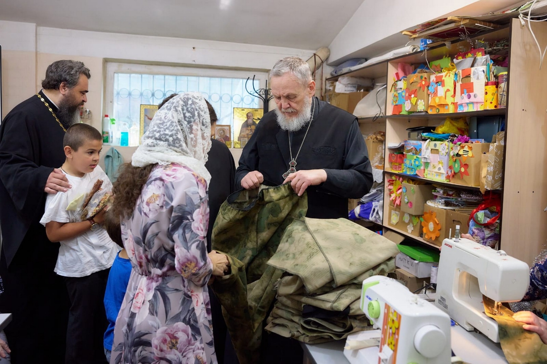 В этот же день Владыка Николай посетил культурно-просветительный центр имени святого праведного Иоанна Кронштадтского при Иоанно-Богословском храме и ознакомился с продукцией, изготовленной волонтерской группой «Шьём для наших».