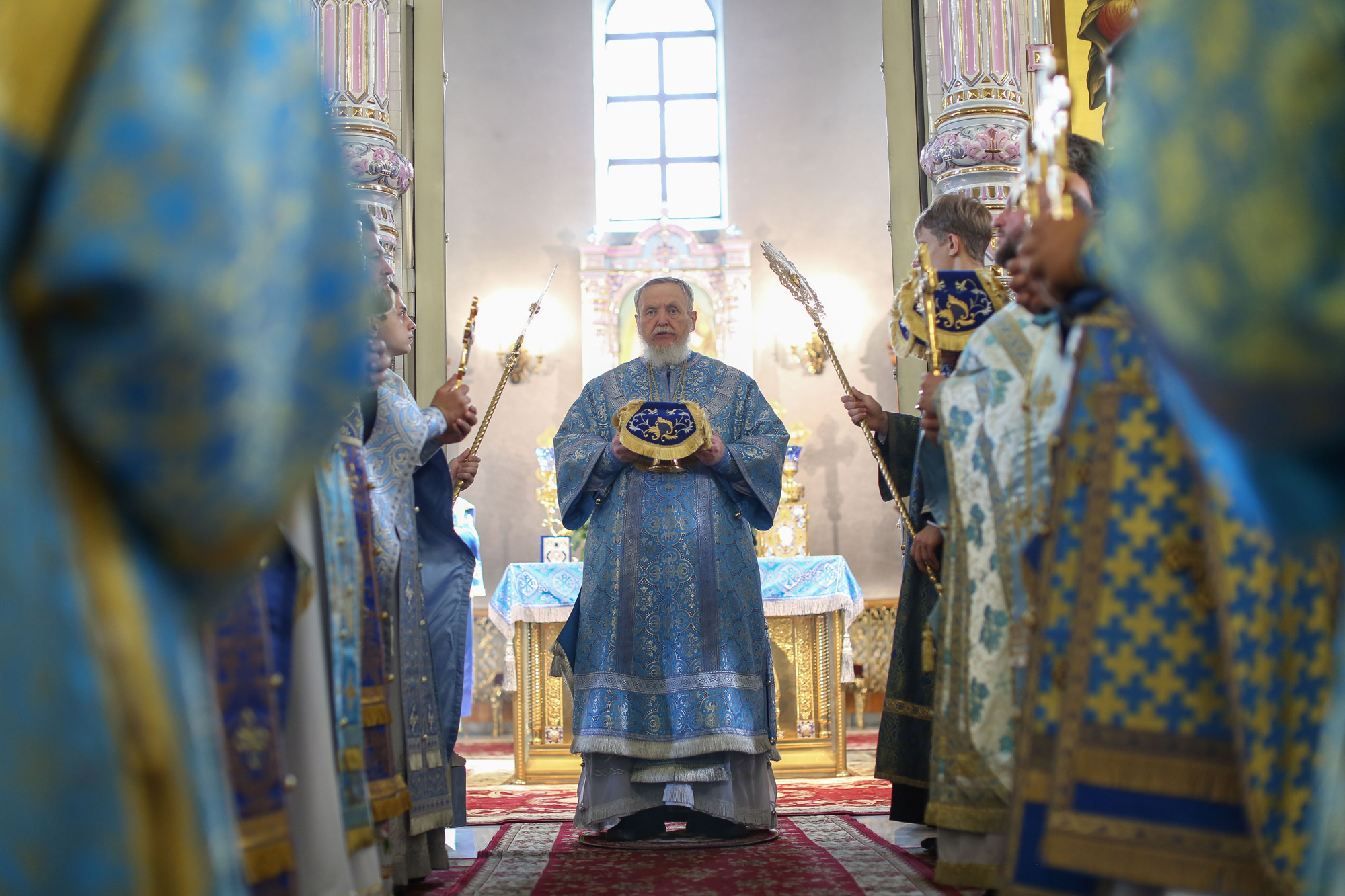 По окончании Литургии были совершены крестный ход и славление, после чего отец настоятель поблагодарил Владыку Николая за архипастырский визит и преподнёс ему старинный «Канонник» Почаевской типографии.