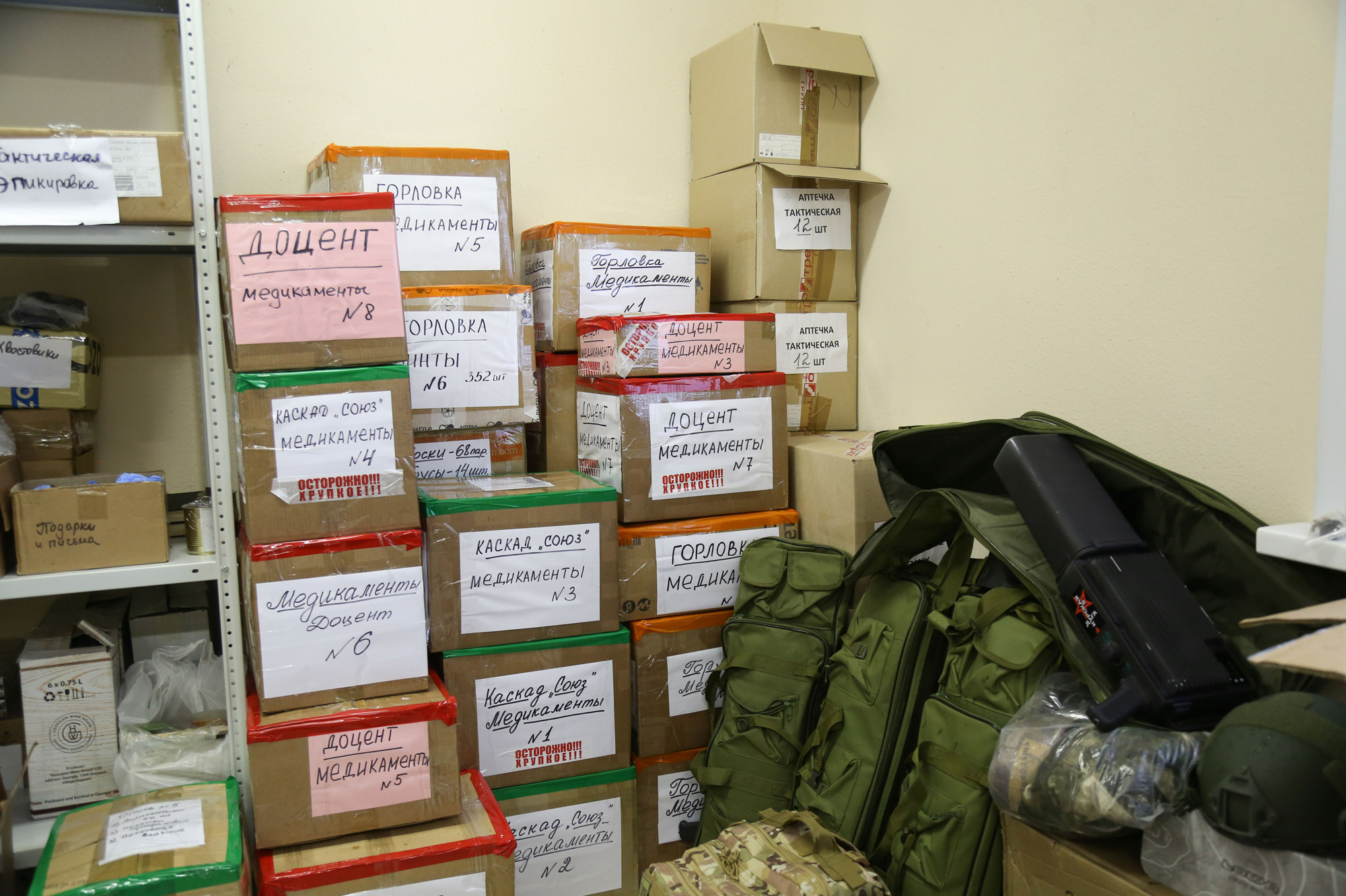 Ценный груз содержит продуктовые наборы и средства гигиены для мирного населения, медикаменты для госпиталей, а также средства тактической медицины, электронное оборудование и экипировку для военных.