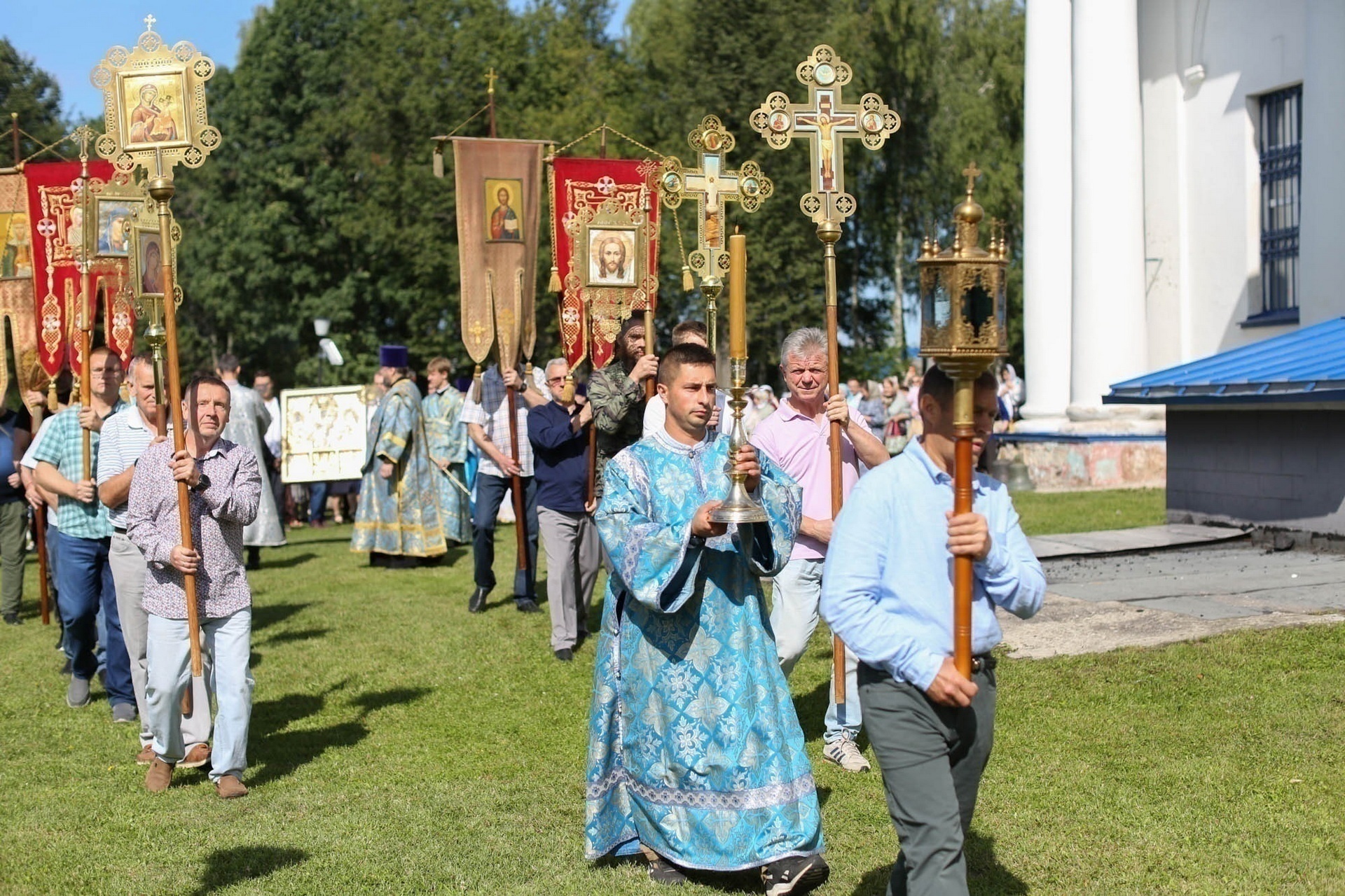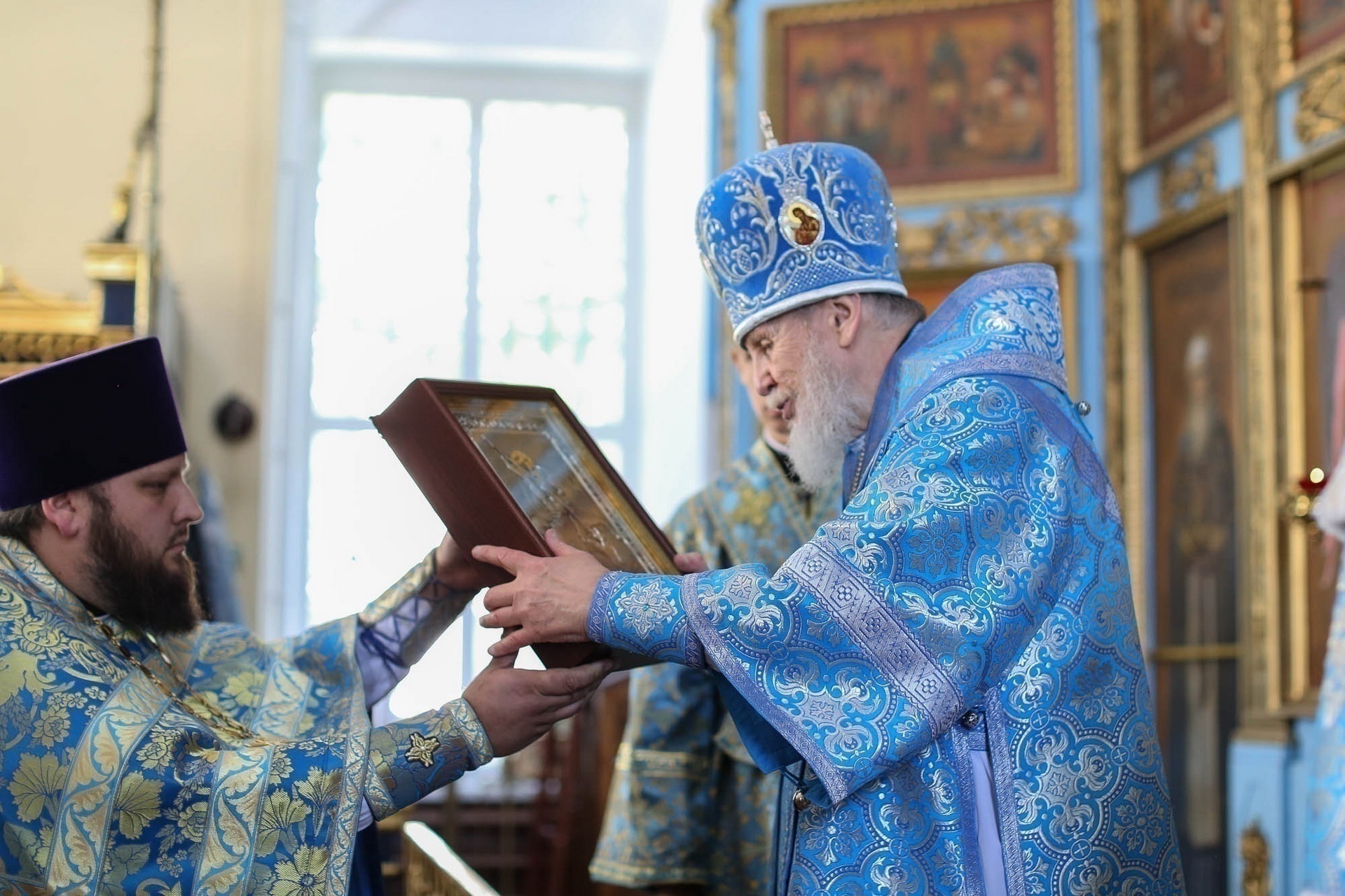 По окончании Литургии были совершены крестный ход, славление, и возглашены многолетия, после чего отец настоятель поблагодарил Владыку Николая за архипастырский визит и преподнёс ему икону святого великомученика Георгия Победоносца.