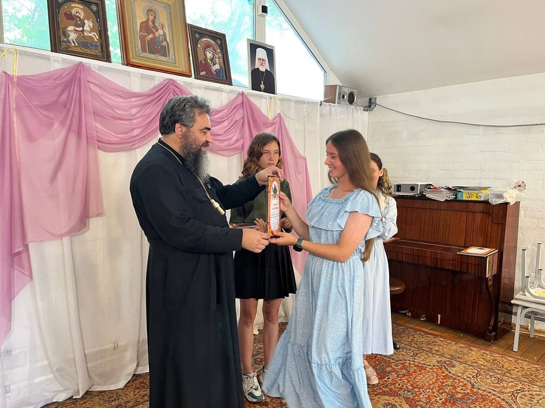 Участники волонтёрских движений были награждены грамотами благочиния. Народные и патриотические песни исполнил молодёжный хор храма, волонтёры читали стихи собственного сочинения.