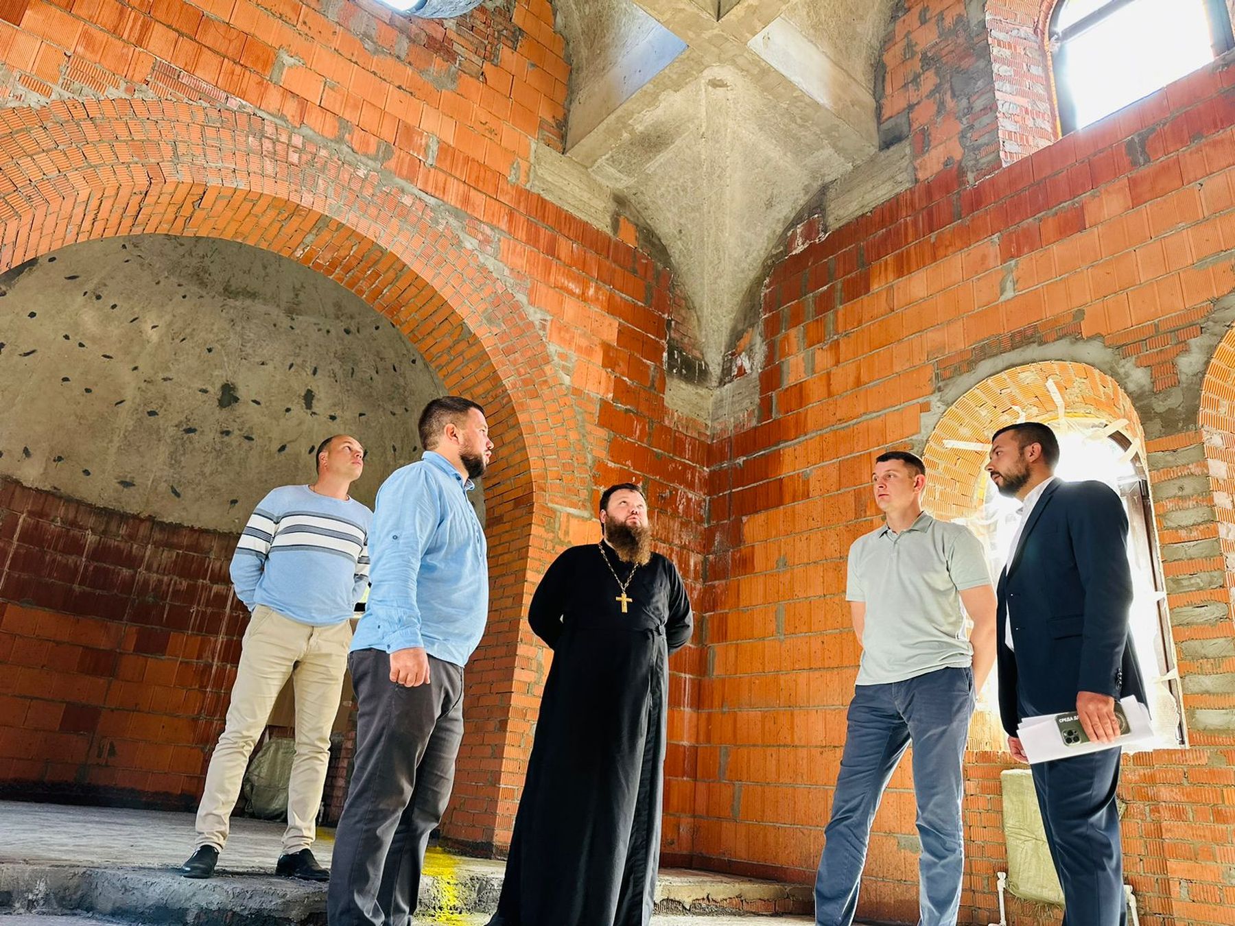 Отец благочинный и Денис Олегович осмотрели ход строительных работ и обсудили дальнейшие планы по строительству.