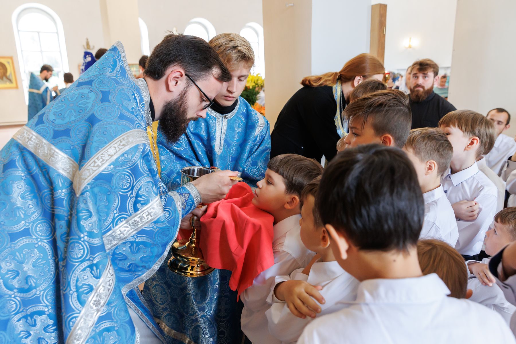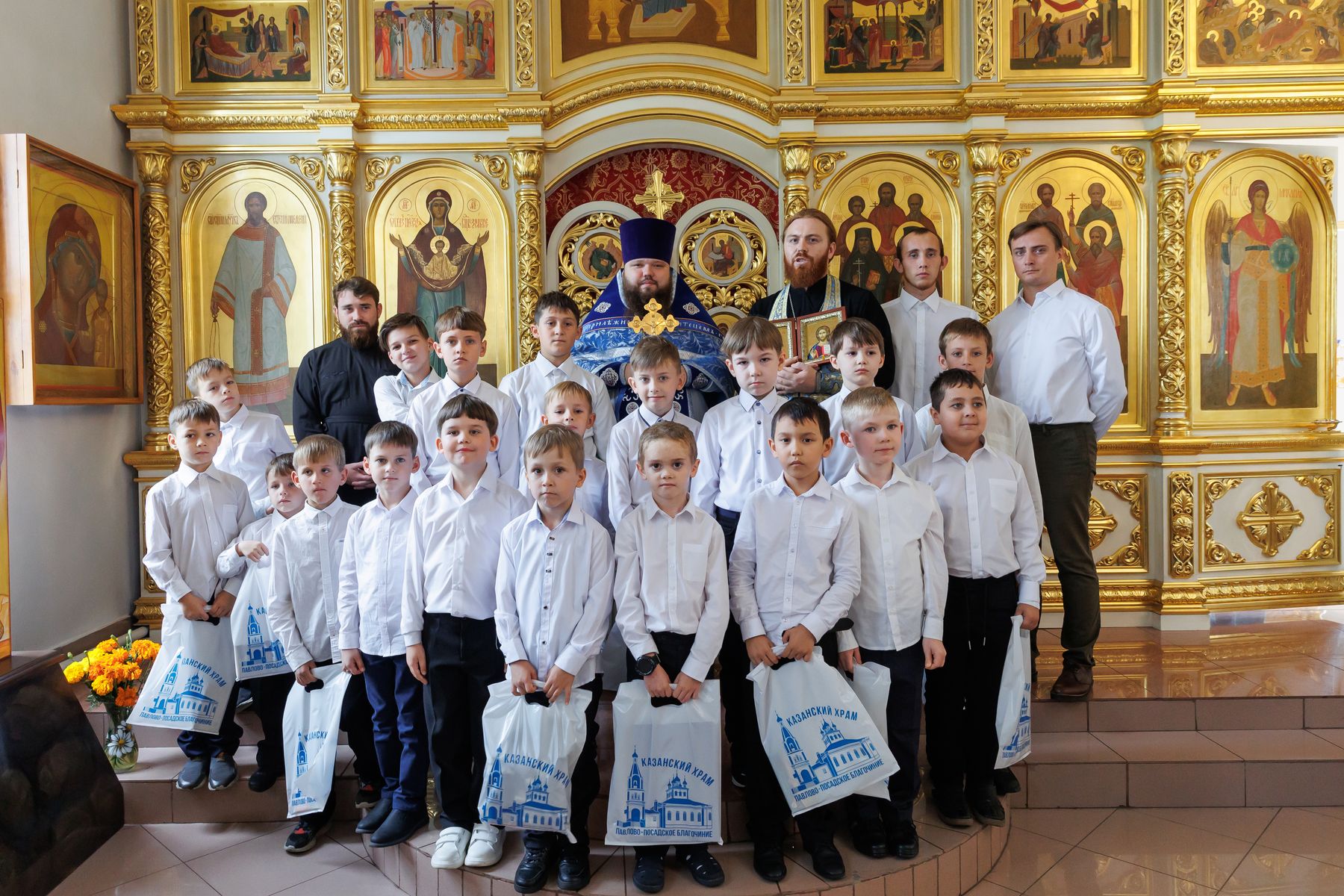 В Казанском храме г. Павловский Посад ребята пели за Божественной литургией и читали часы. Богослужение возглавил благочинный Павлово-Посадского церковного округа священник Александр Анохин. Дети исповедались и причастились Святых Христовых Таин.