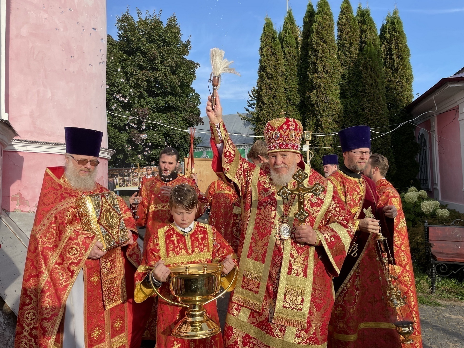Его Преосвященству сослужили благочинный монастырей Балашихинской епархии игумен Евмений (Лагутин), благочинный Орехово-Зуевского церковного округа протоиерей Андрей Коробков, благочинный Павлово-Посадского церковного округа священник Александр Анохин, настоятель Покровско-Васильевского монастыря игумен Андрей (Тонков), старший священник обители иерей Андрей Филиппенко, клирик храма святителя Филиппа, митрополита Московского, в Мещанской слободе г. Москвы протоиерей Иоанн Зарецкий, клирик Димитрие-Солунского храма – Патриаршего подворья села Дмитровское Красногорского городского округа протоирей Михаил Исаев и духовенство Балашихинской епархий.