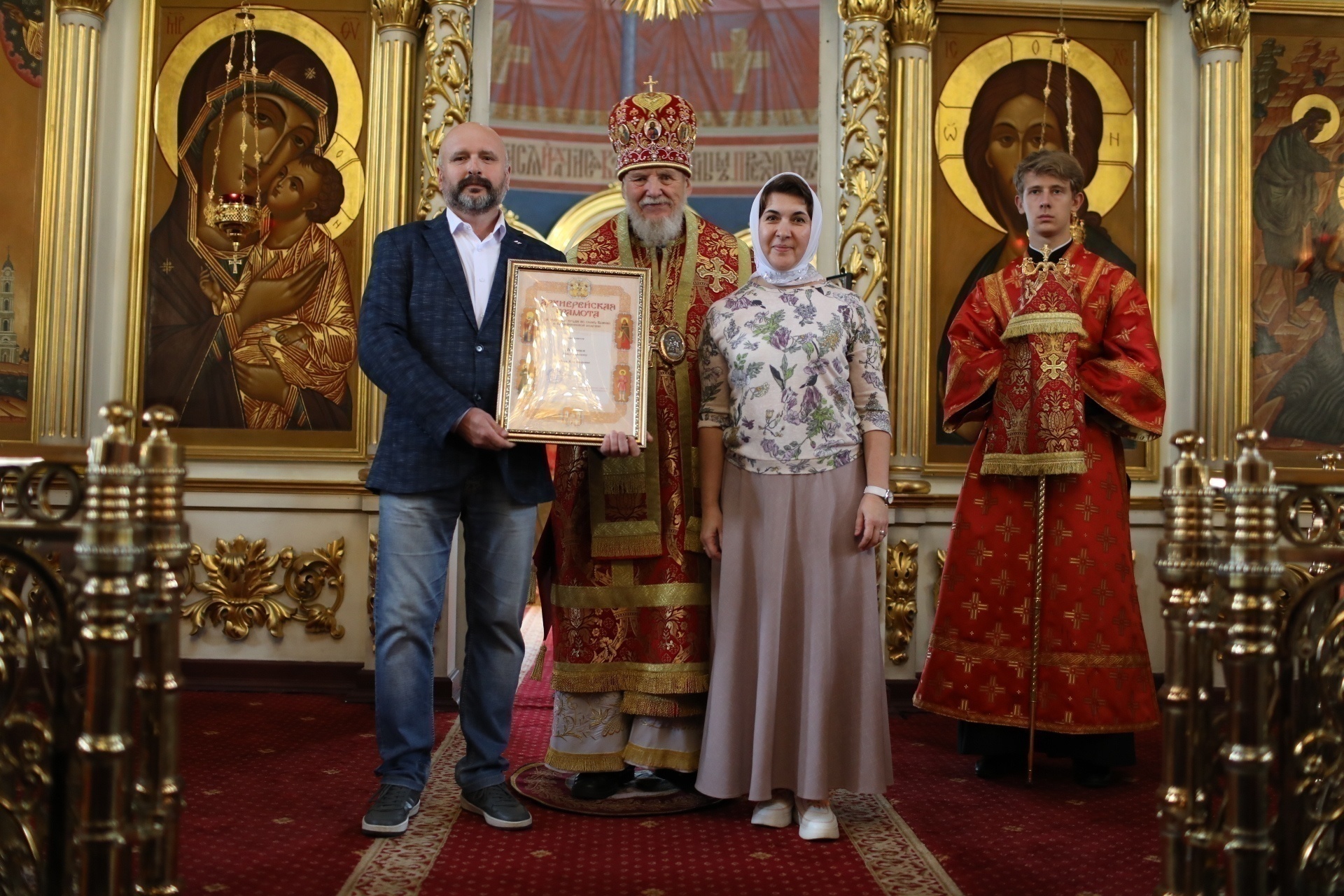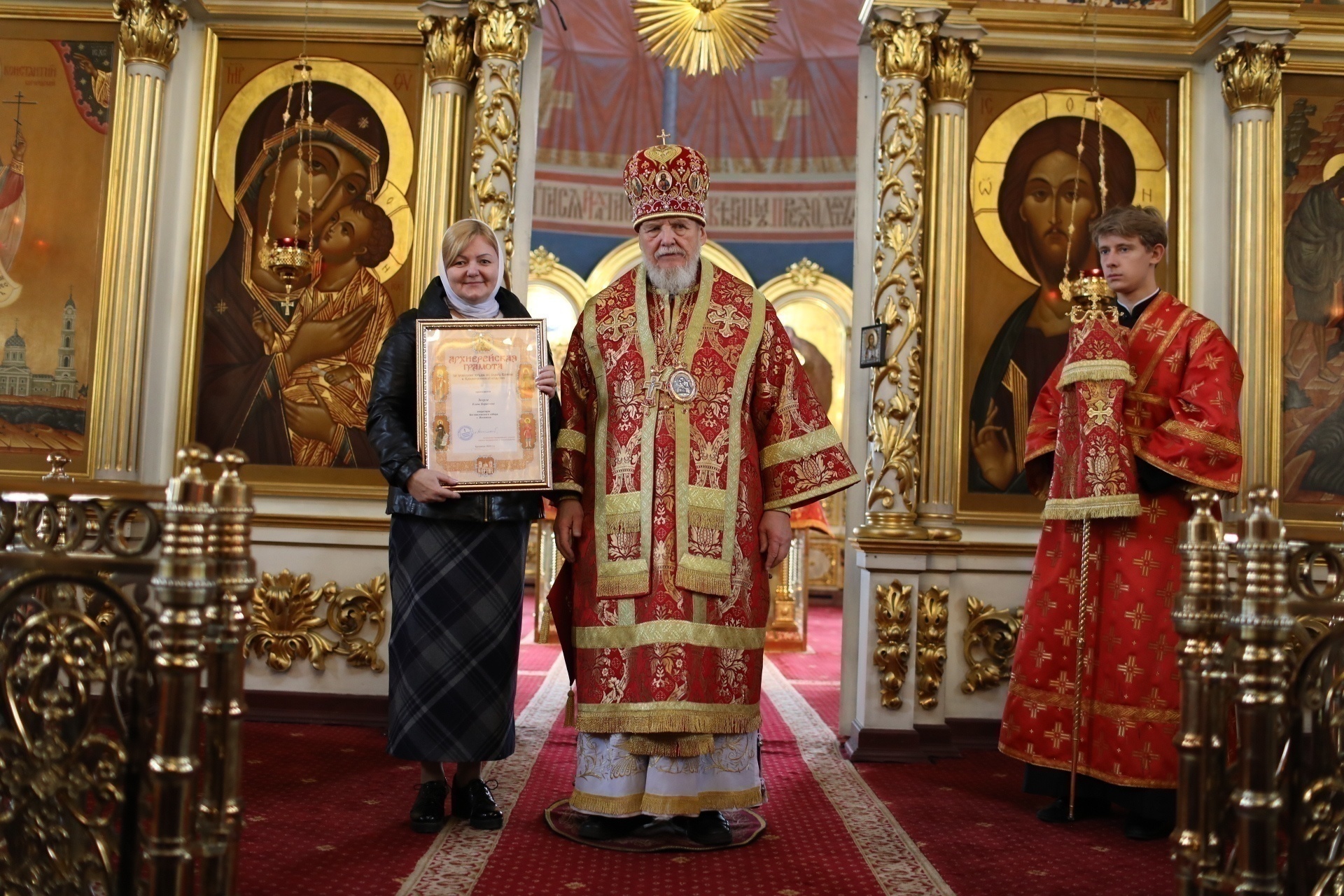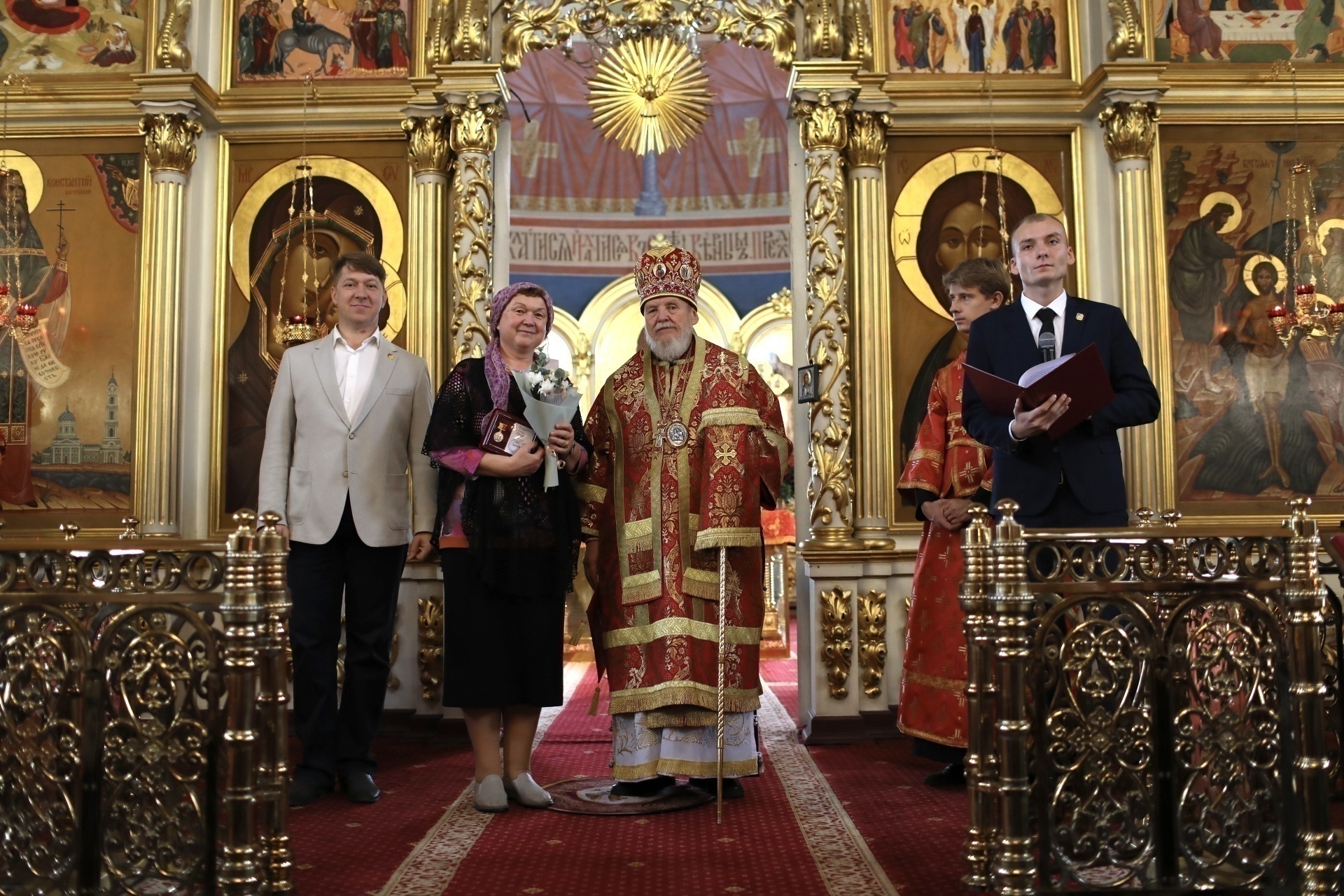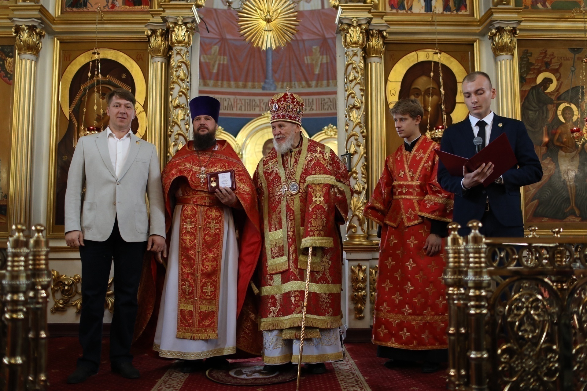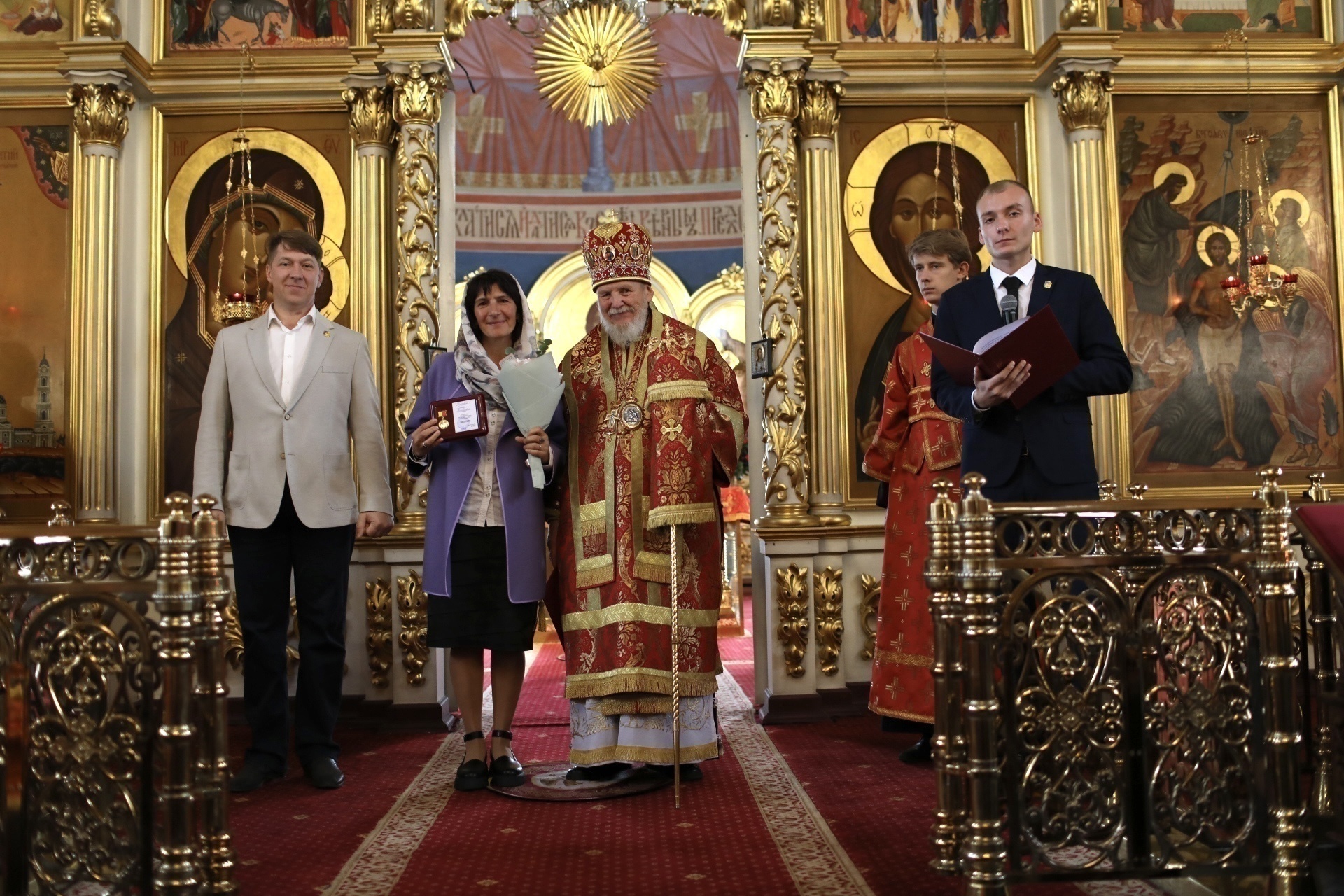 Затем заместитель главы администрации Богородского городского округа О. М. Шойко обратился к епископу Николаю с приветствием и вручил юбилейные медали администрации Богородского городского округа священнослужителям и мирянам за активную жизненную позицию и весомый вклад в духовное воспитание и просвещение жителей округа.