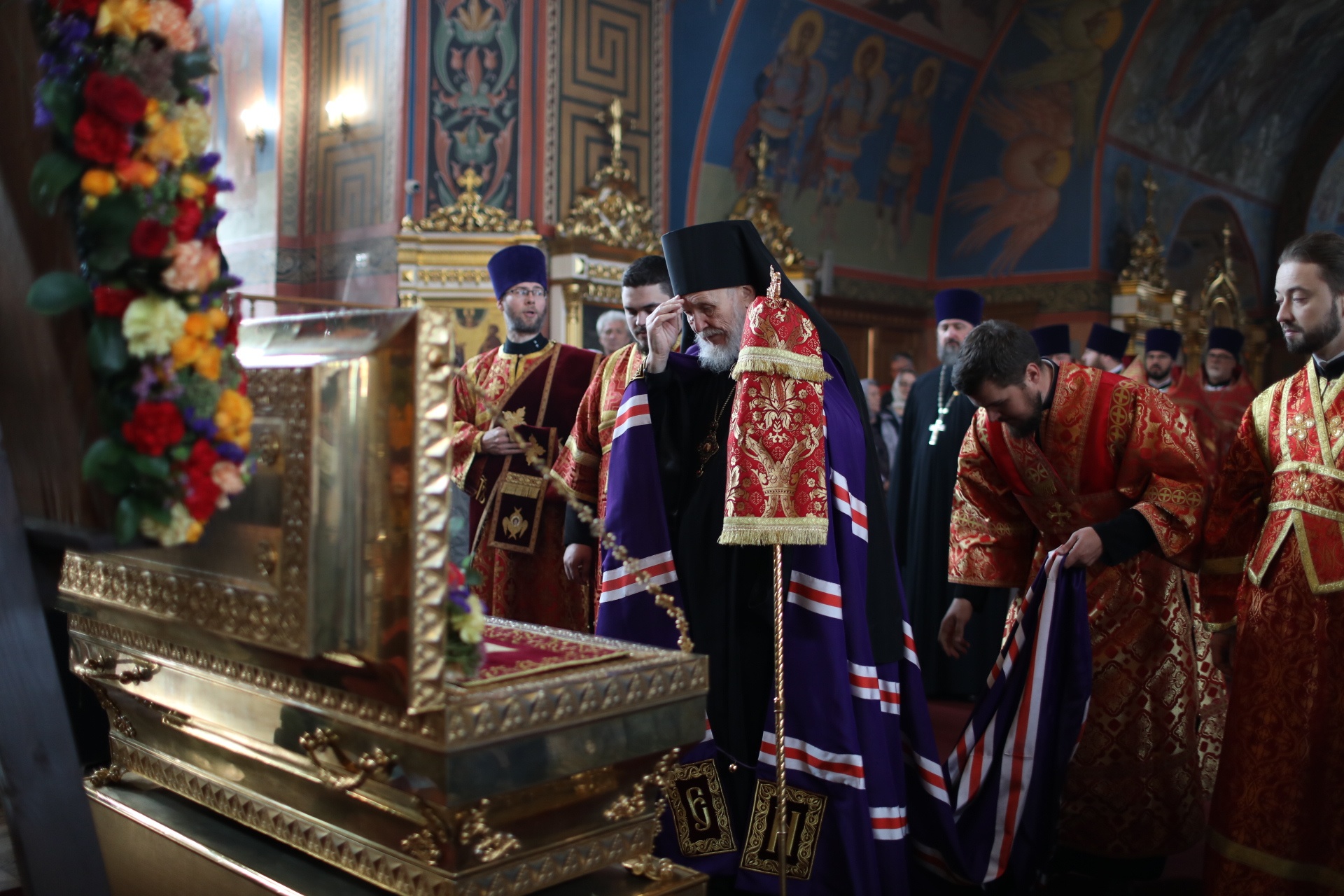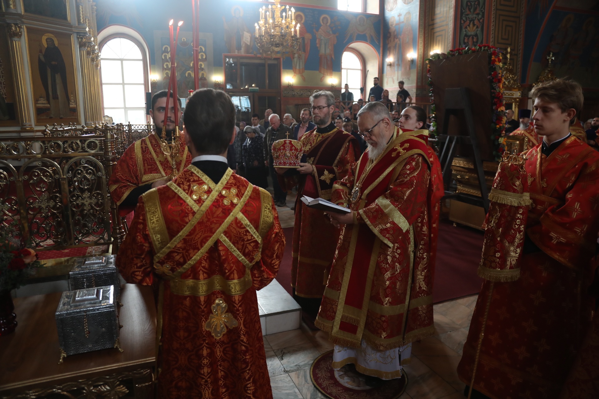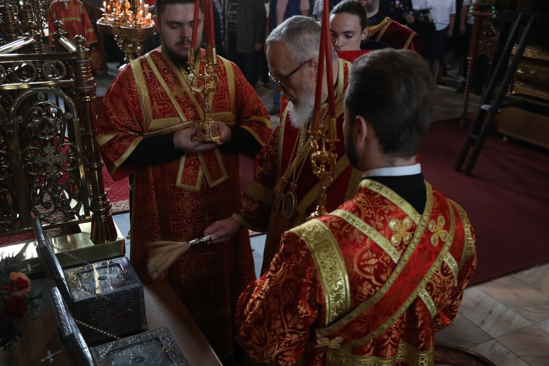 Перед началом Литургии епископ Николай освятил новые ковчеги с мощами святых мучеников, убиенных вместе со священномучеником Константином Богородским.