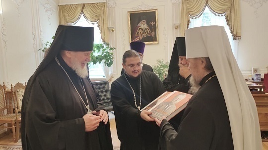 В завершение встречи епископ Николай сердечно поблагодарил митрополита Симферопольского и Крымского Лазаря за тёплый приём и братское общение, передав Его Высокопреосвященству новинки Издательства Московской Патриархии: книги Святейшего Патриарха Кирилла, календари, богослуженые издания.