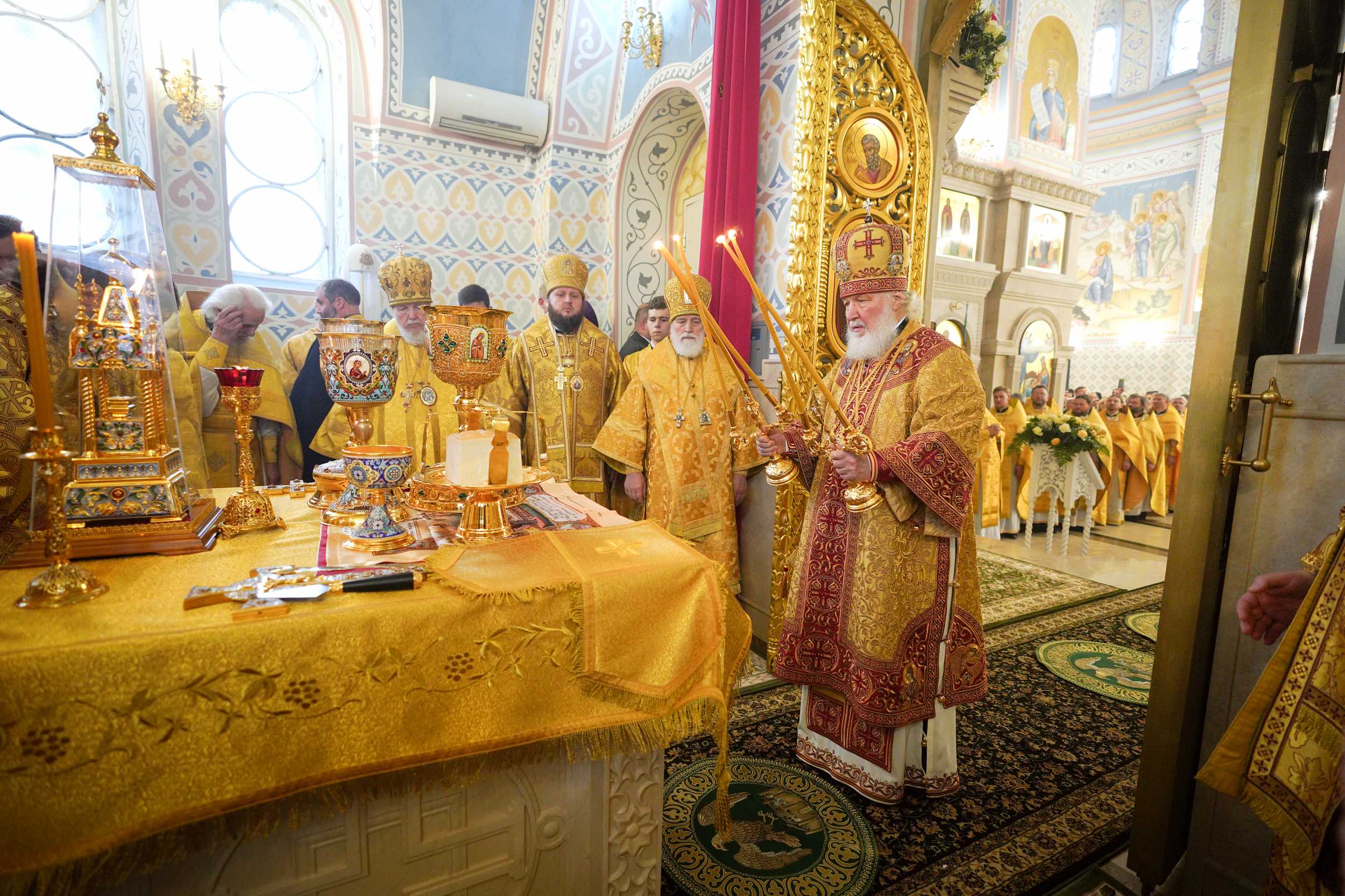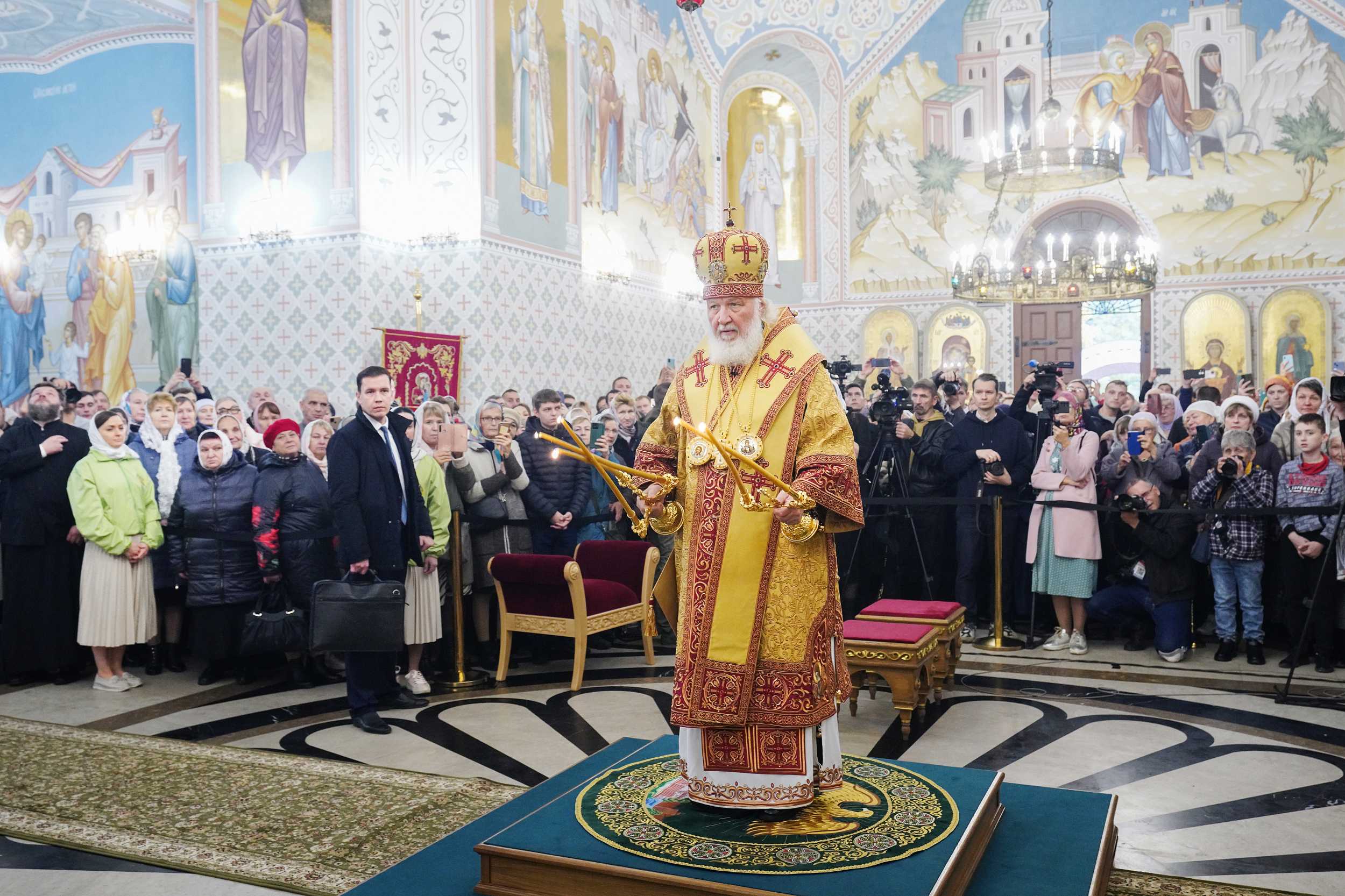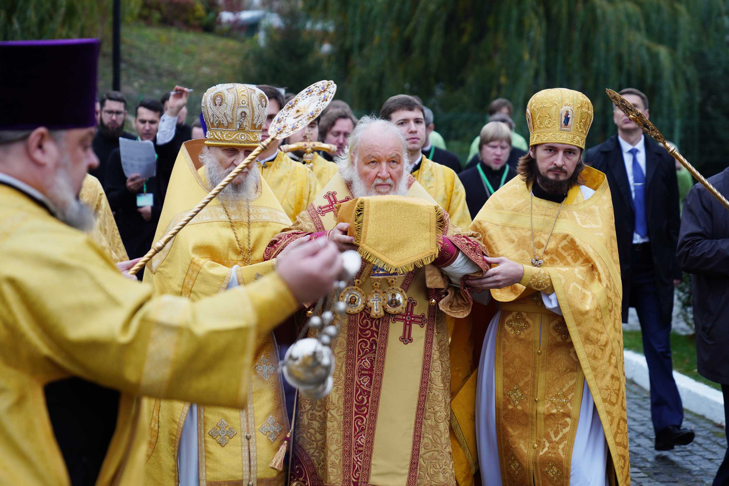 На сугубой ектении были вознесены особые прошения, Предстоятель Русской Церкви прочитал молитву о Святой Руси.