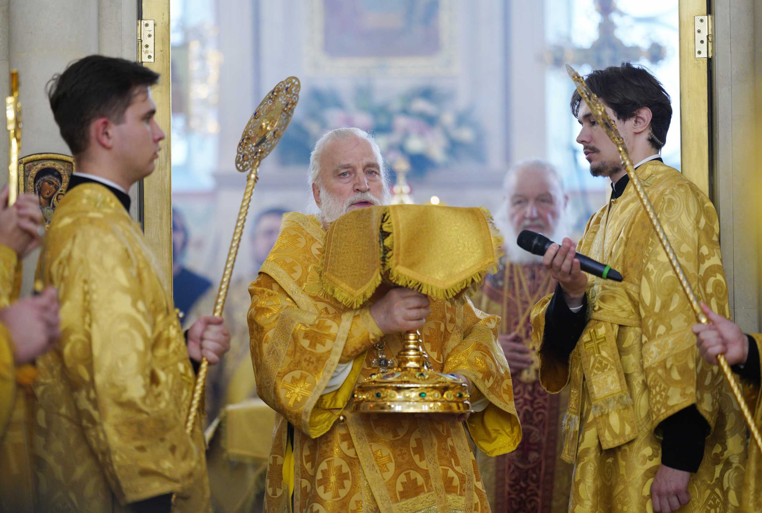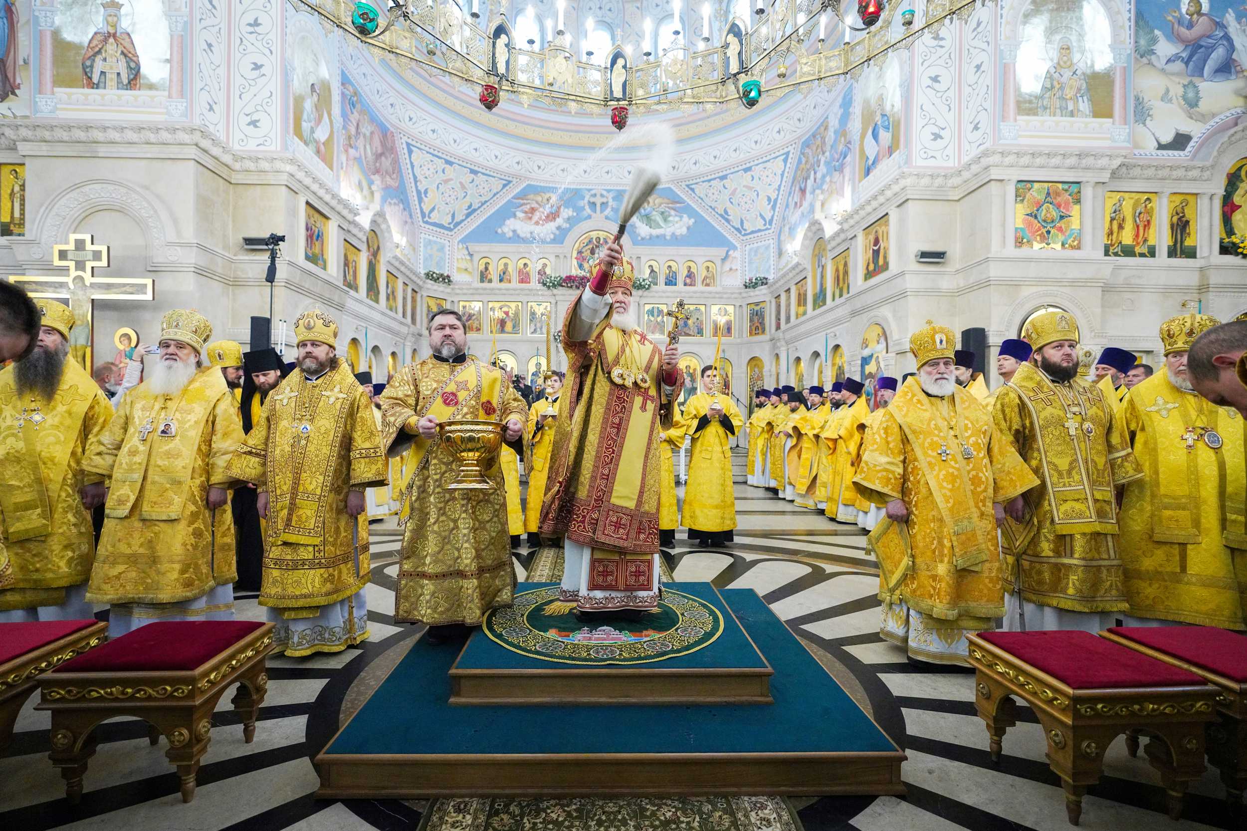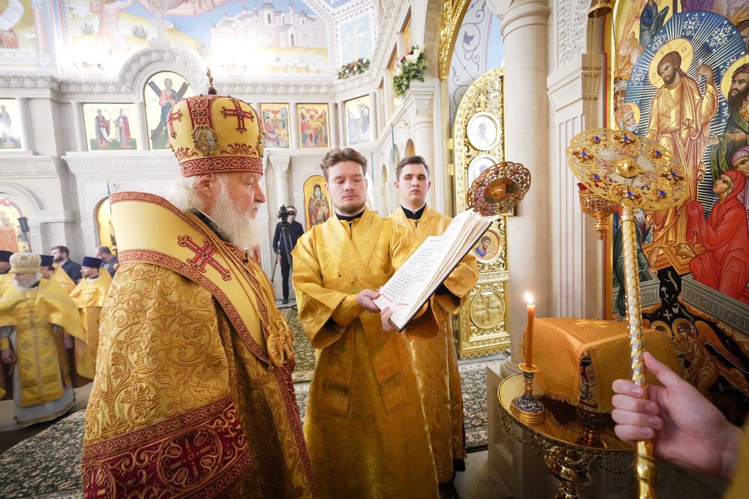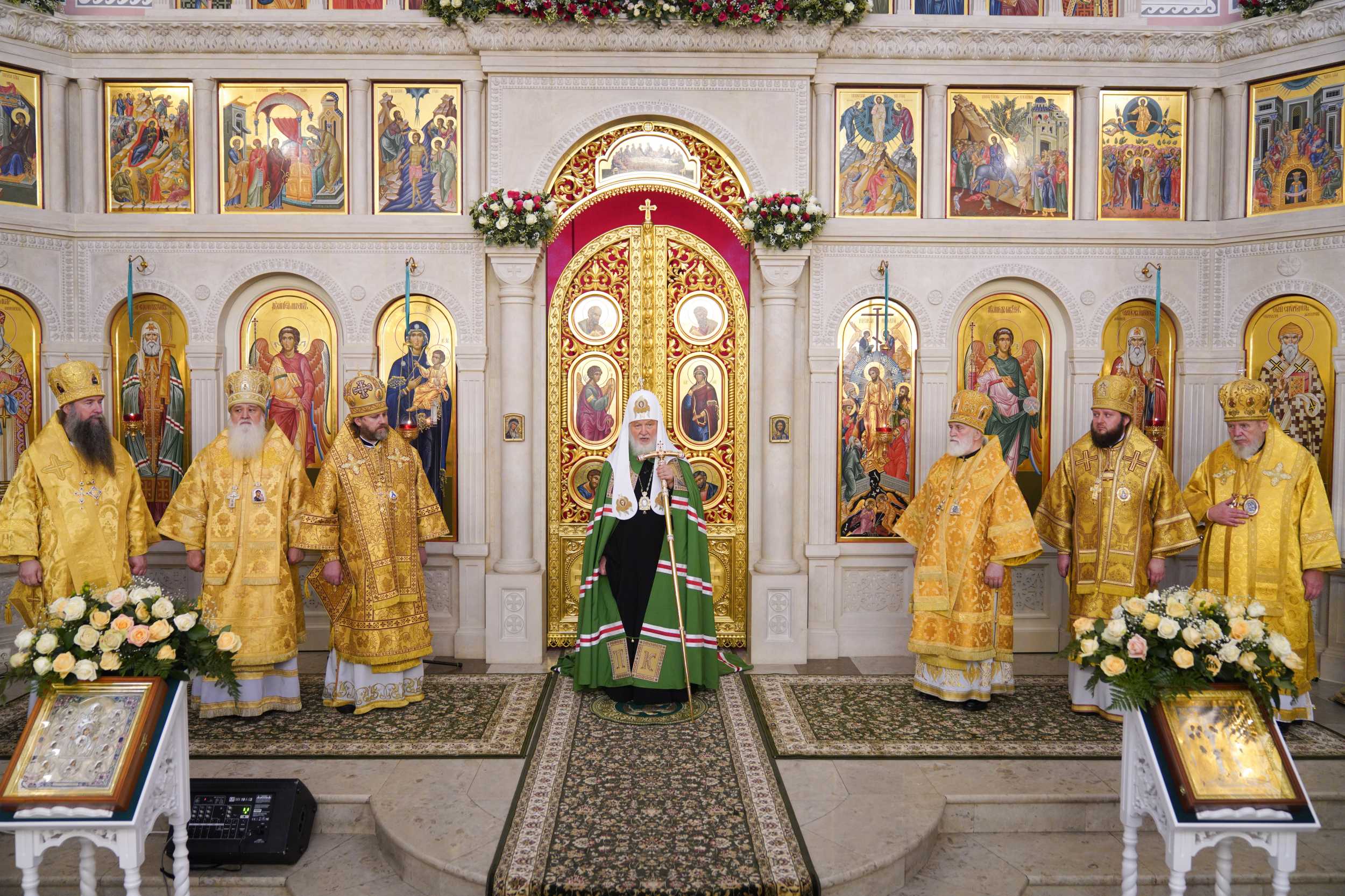 На сугубой ектении были вознесены особые прошения, Предстоятель Русской Церкви прочитал молитву о Святой Руси.