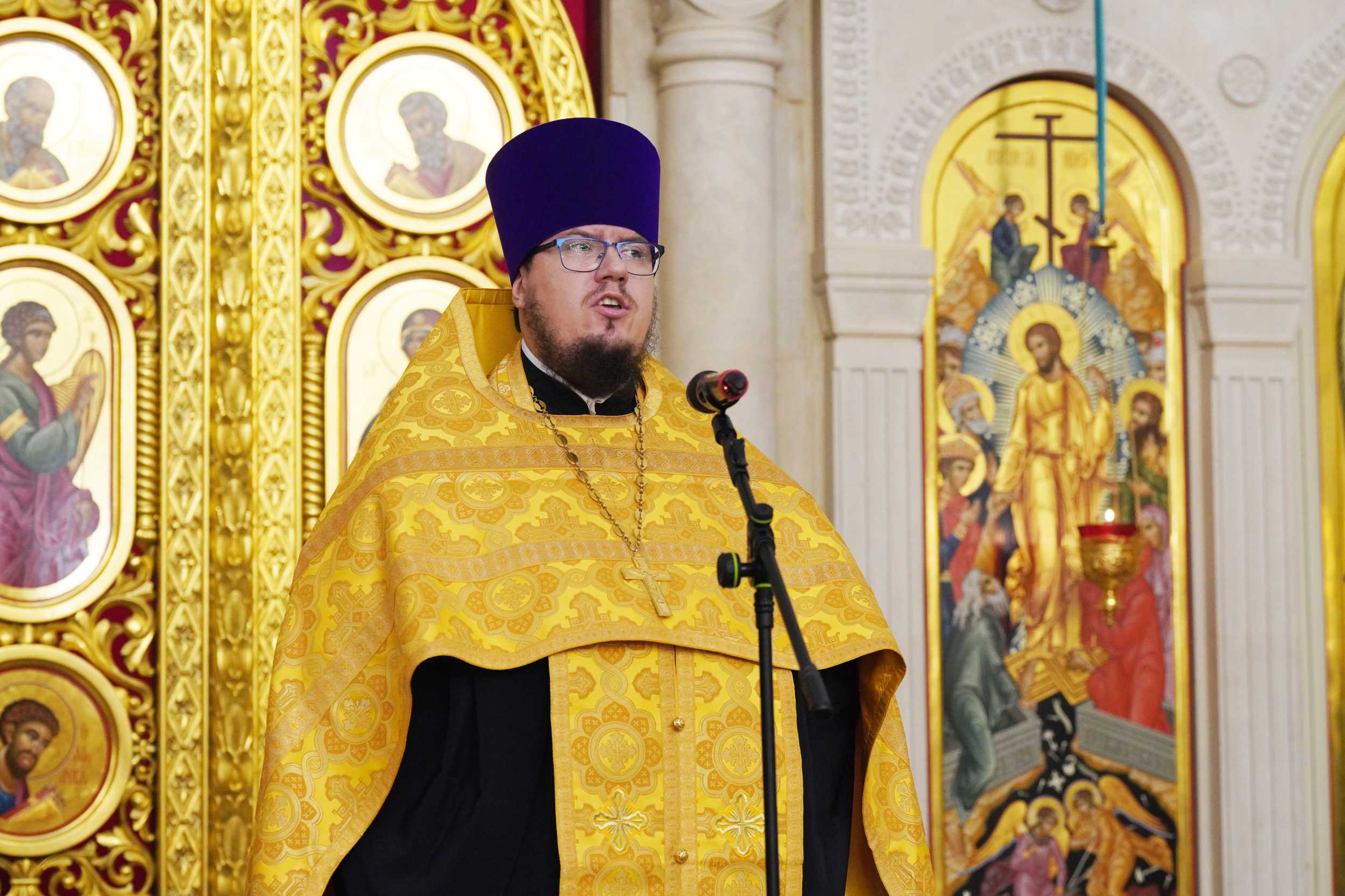Проповедь перед причастием произнес иерей Димитрий Степаненков, клирик Богоявленского храма г. Коломны.