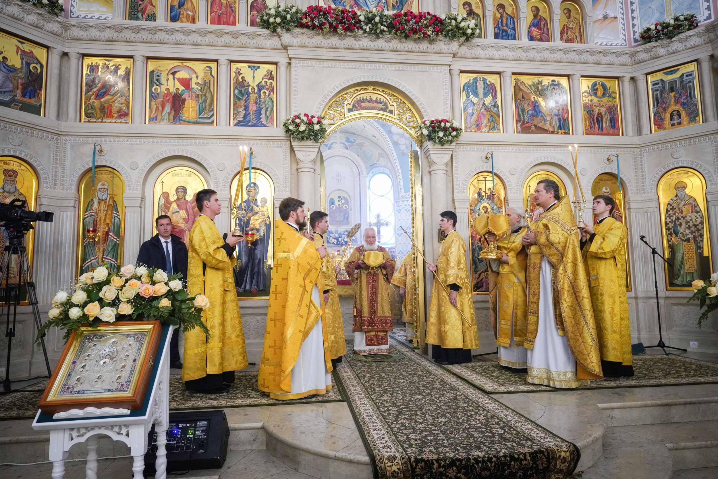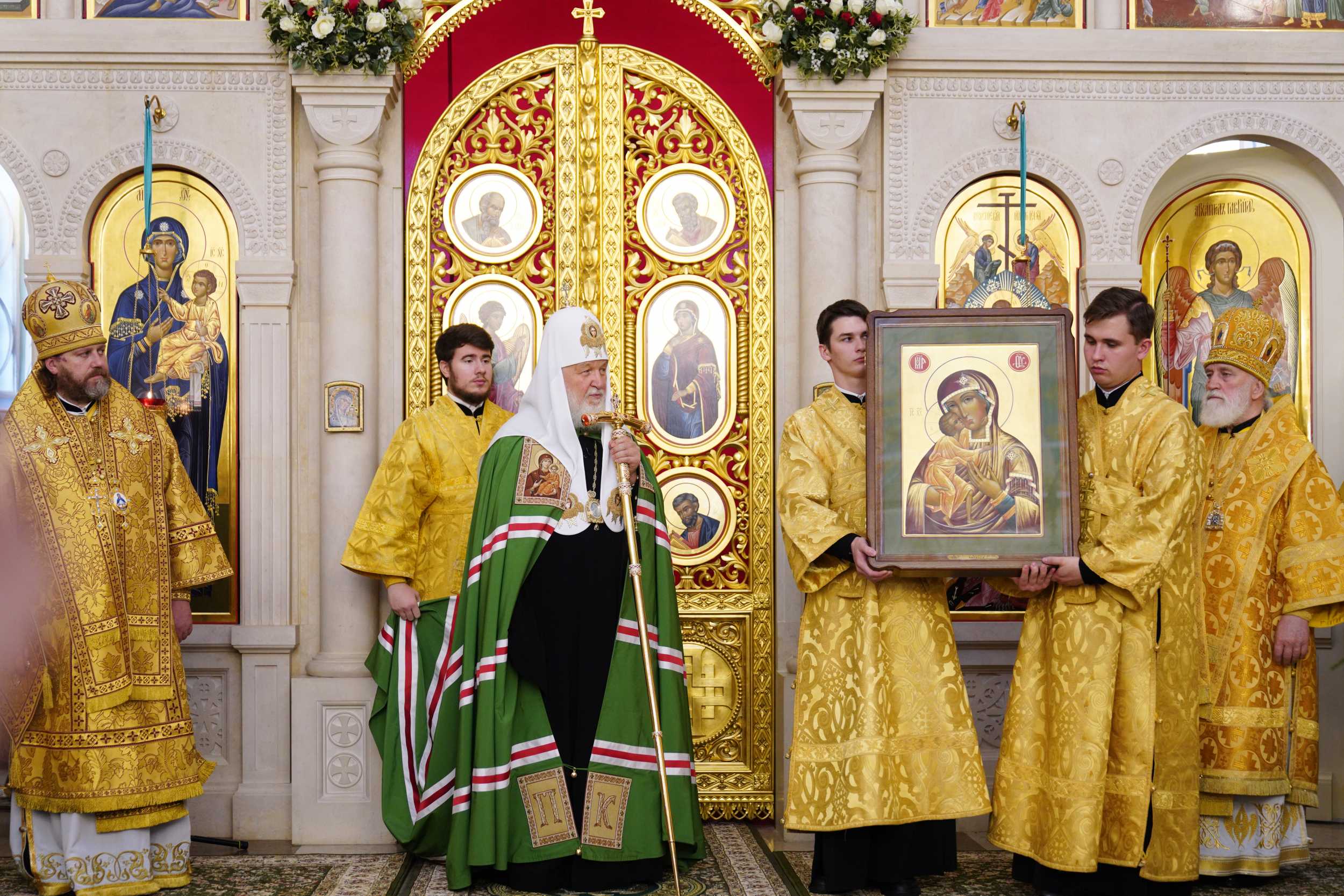 В дар новоосвященному храму Святейший Патриарх Кирилл передал список Феодоровской иконы Божией Матери.