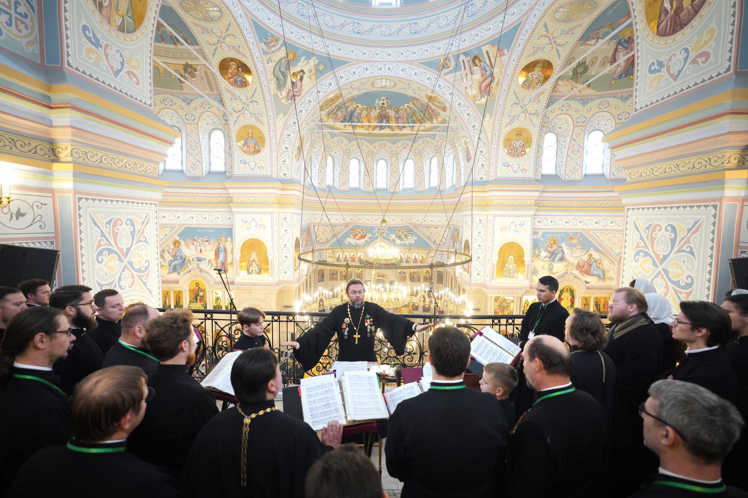Богослужебные песнопения исполнили хор духовенства Московской митрополии под управлением иерея Сергия Голева и смешанный хор Троицкого храма в Щурове (регент — С.А. Германова).