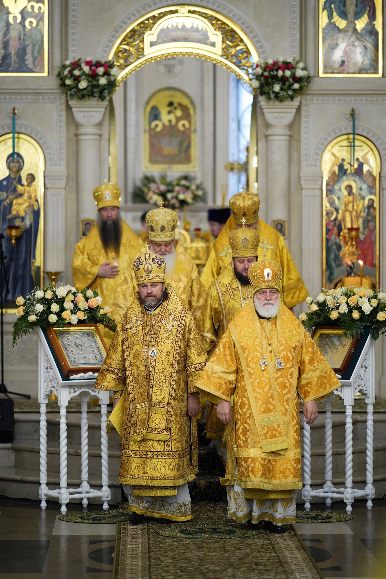 Были освящены три престола: центральный — в честь Святой Живоначальной Троицы, северный (левый) — в честь Введения во храм Пресвятой Богородицы, южный (правый) — в честь святителя Николая Чудотворца.