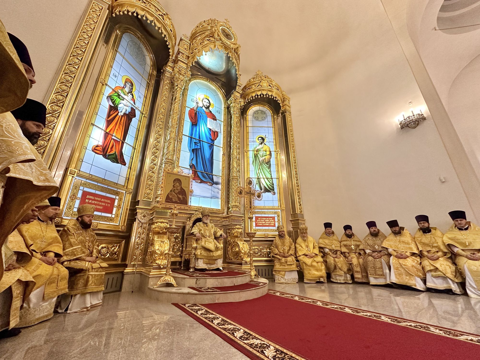 После отпуста архиепископ Фома поприветствовал митрополита Павла и архипастырей митрополии, и поблагодарил всех за соборное служение.