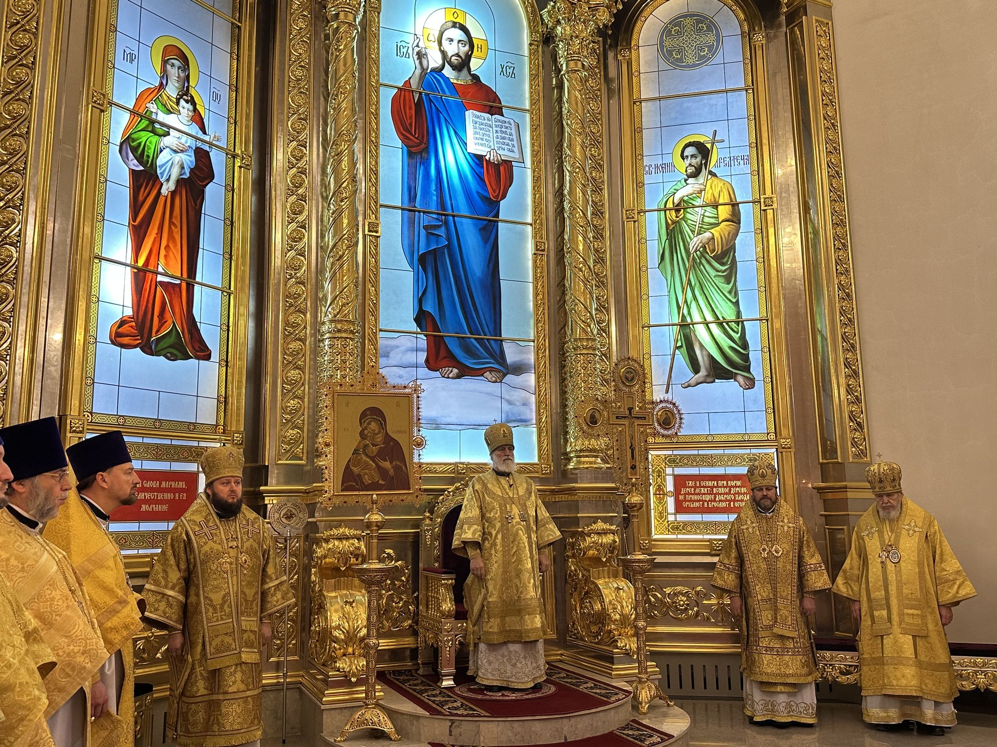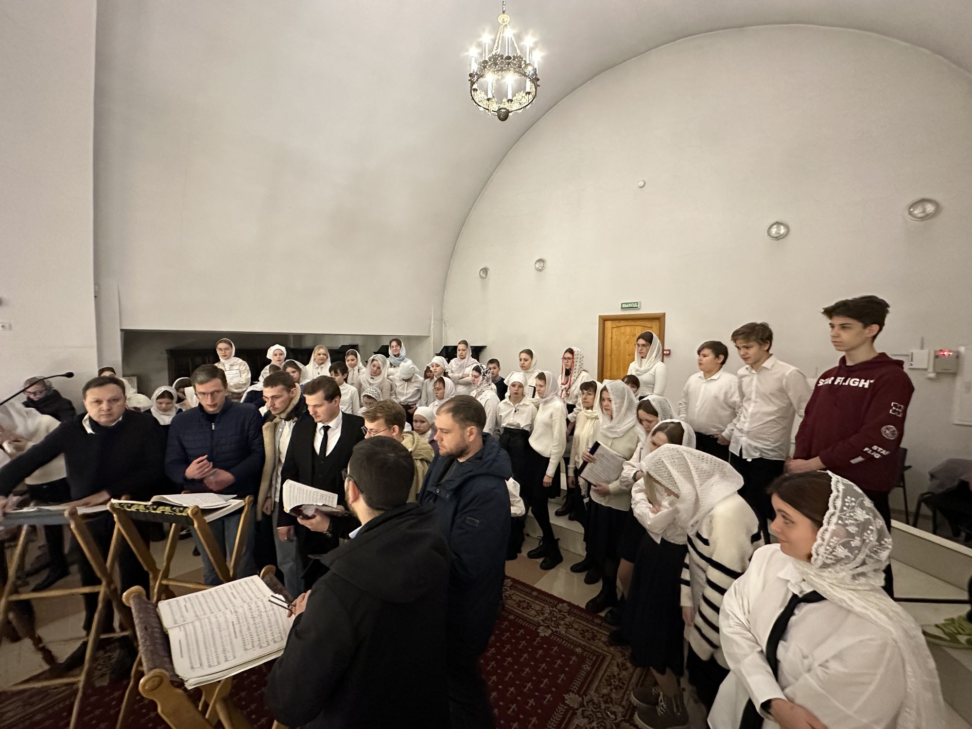 Богослужебные песнопения исполнили хор кафедрального собора под управлением Павла Евгеньевича Карпова и детский хор под управлением Натальи Вячеславовны Логачевой.