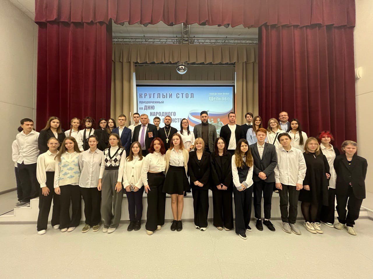 3 ноября, в преддверии Дня народного единства, в Щёлковском лицее №7 специалисты отдела по работе с молодёжью Комитета по физической культуре, спорту и работе с молодёжью администрации городского округа Щёлково провели круглый стол под названием «Мы вместе».