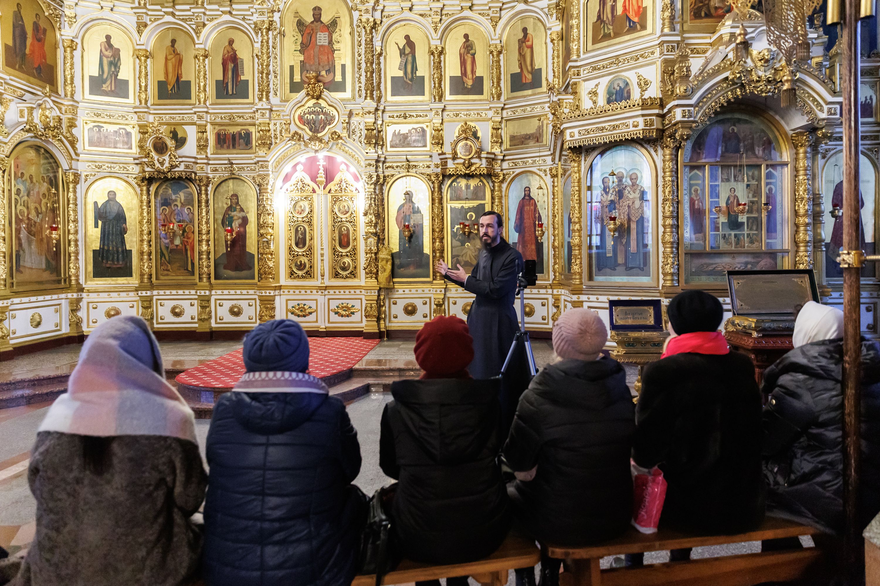 24 ноября в рамках программы повышения квалификации «Методика преподавания курса «Основы религиозных культур и светской этики. Модуль Основы православной культуры» для слушателей факультета переподготовки и повышения квалификации Института дополнительного образования в Богородицерождественском соборе города Орехово-Зуево состоялось занятие на тему «Православный храм и его устройство», которое провели декан означенного факультета доцент Г. Ю. Колычева и ответственный за миссионерскую работу в Орехово-Зуевском церковном округе П. С. Королёв. Клирик собора диакон Роман Хамракулов рассказал слушателям об истории собора.